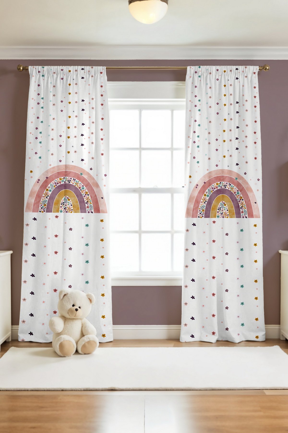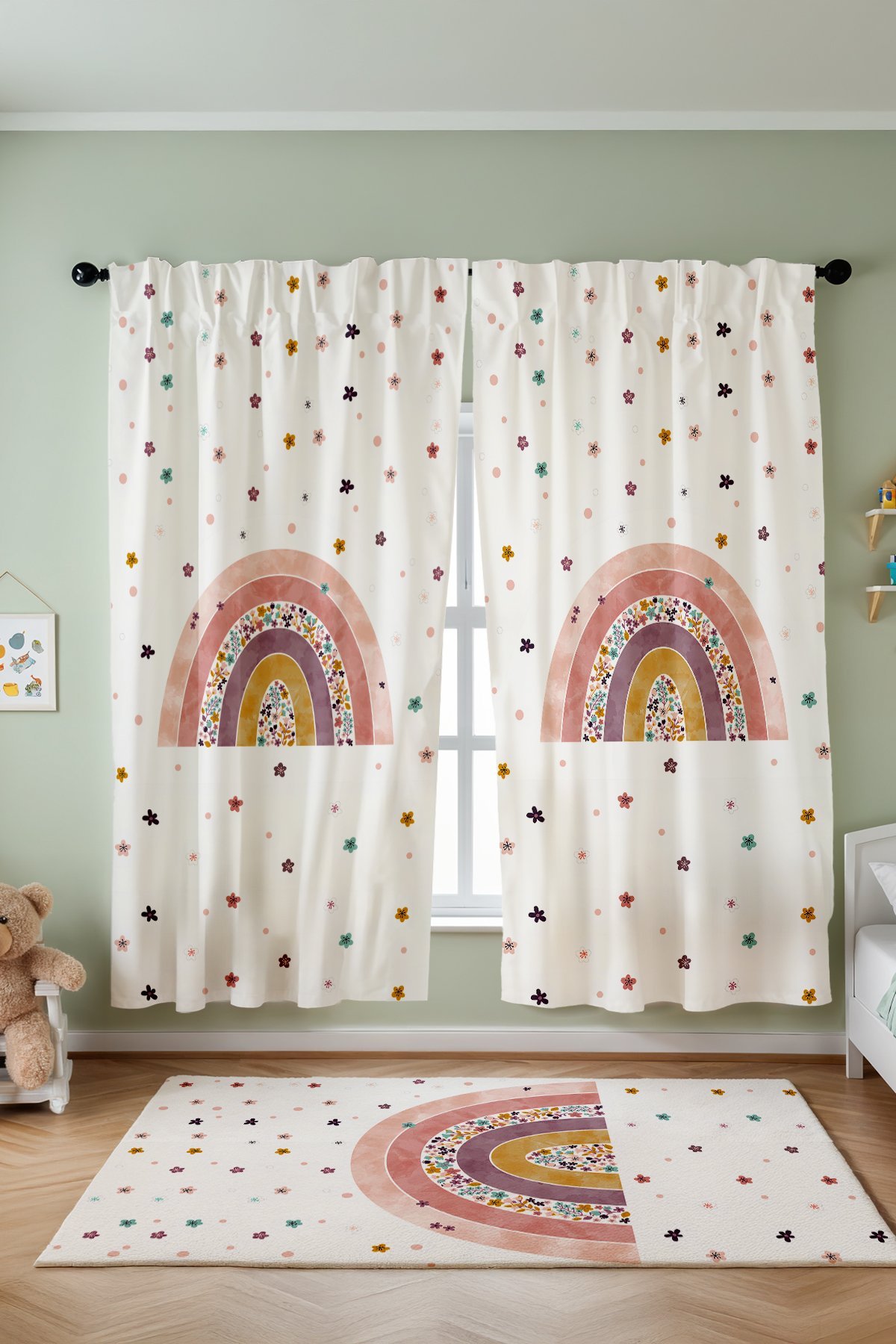 Çiçek Gökkuşakları Desenli Çocuk Bebek Odası Fon Perde (Tek Kanat Fiyatlandırma)
