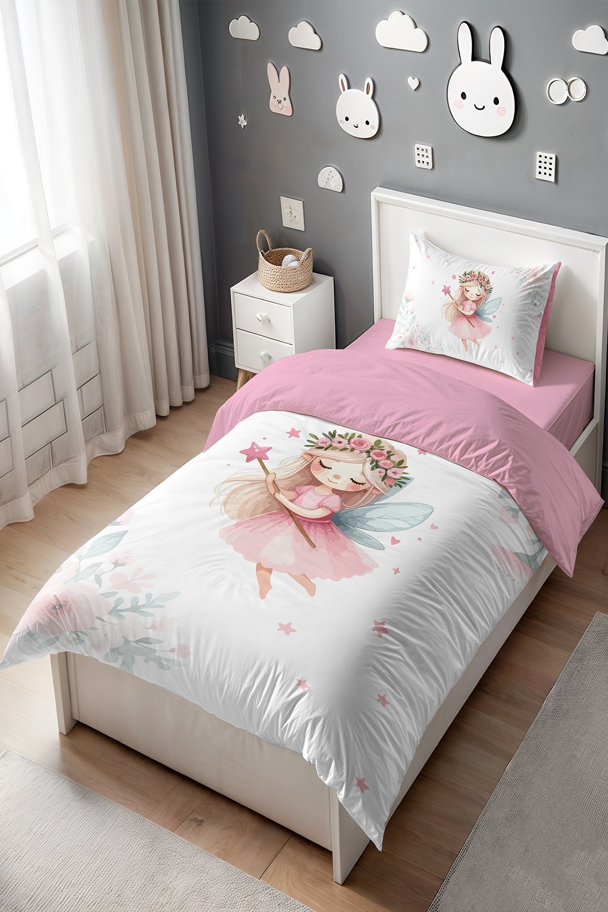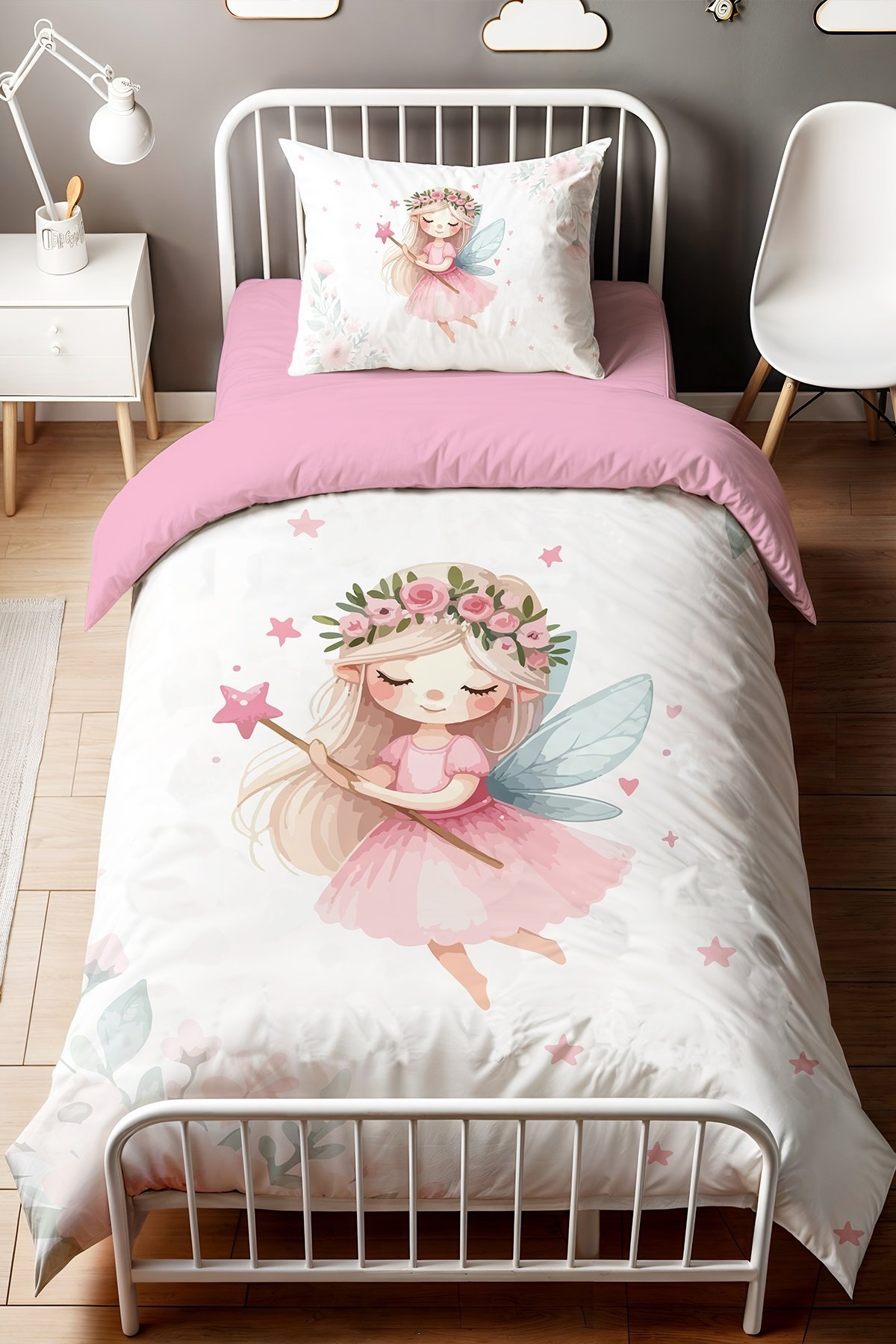 Çiçek Taçlı Peri Kızı Desenli Tek Kişilik Bebek Çocuk Nevresim Seti