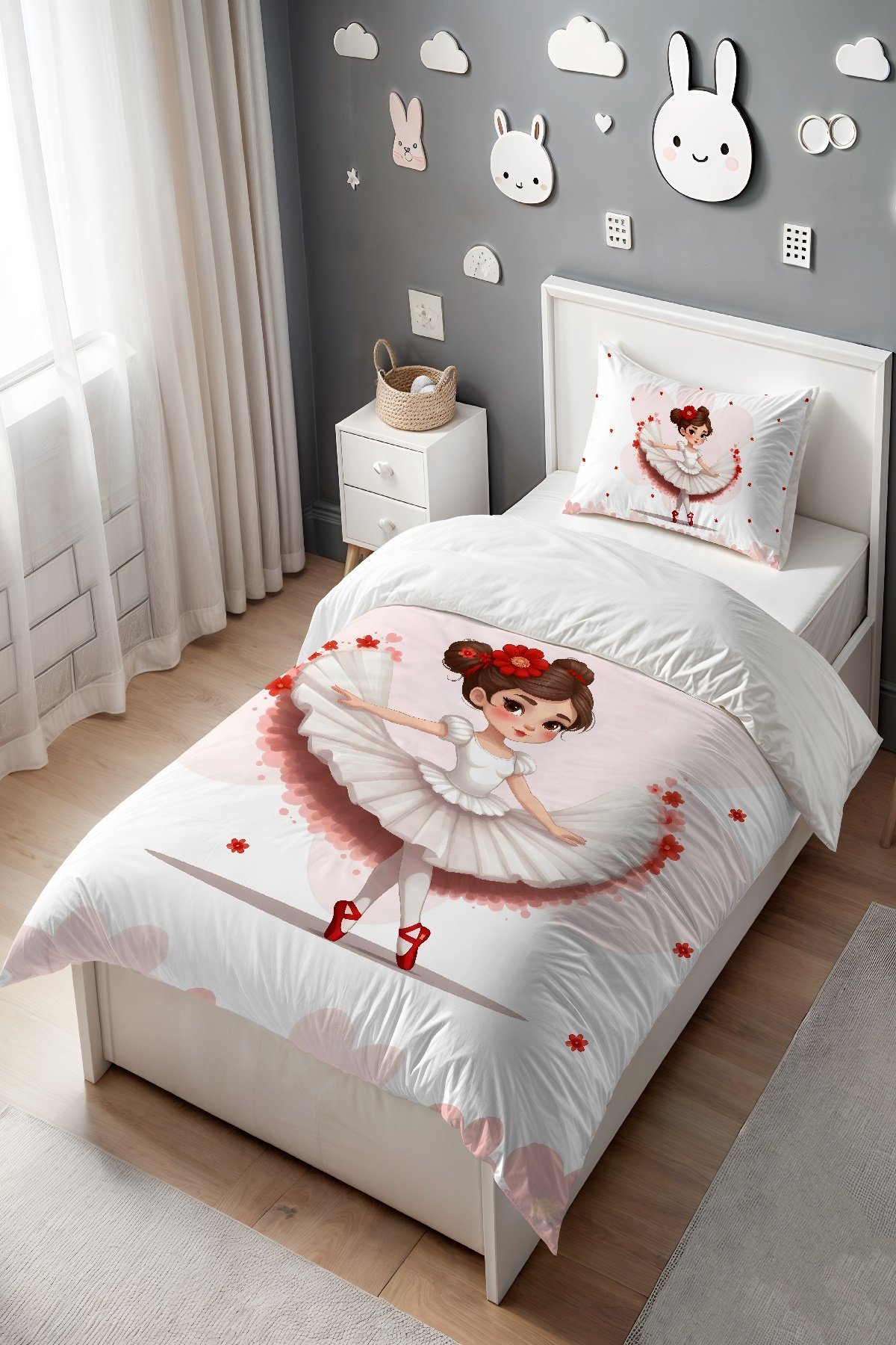 Çiçekli Balerin Kız Desenli Tek Kişilik Bebek Çocuk Nevresim Seti