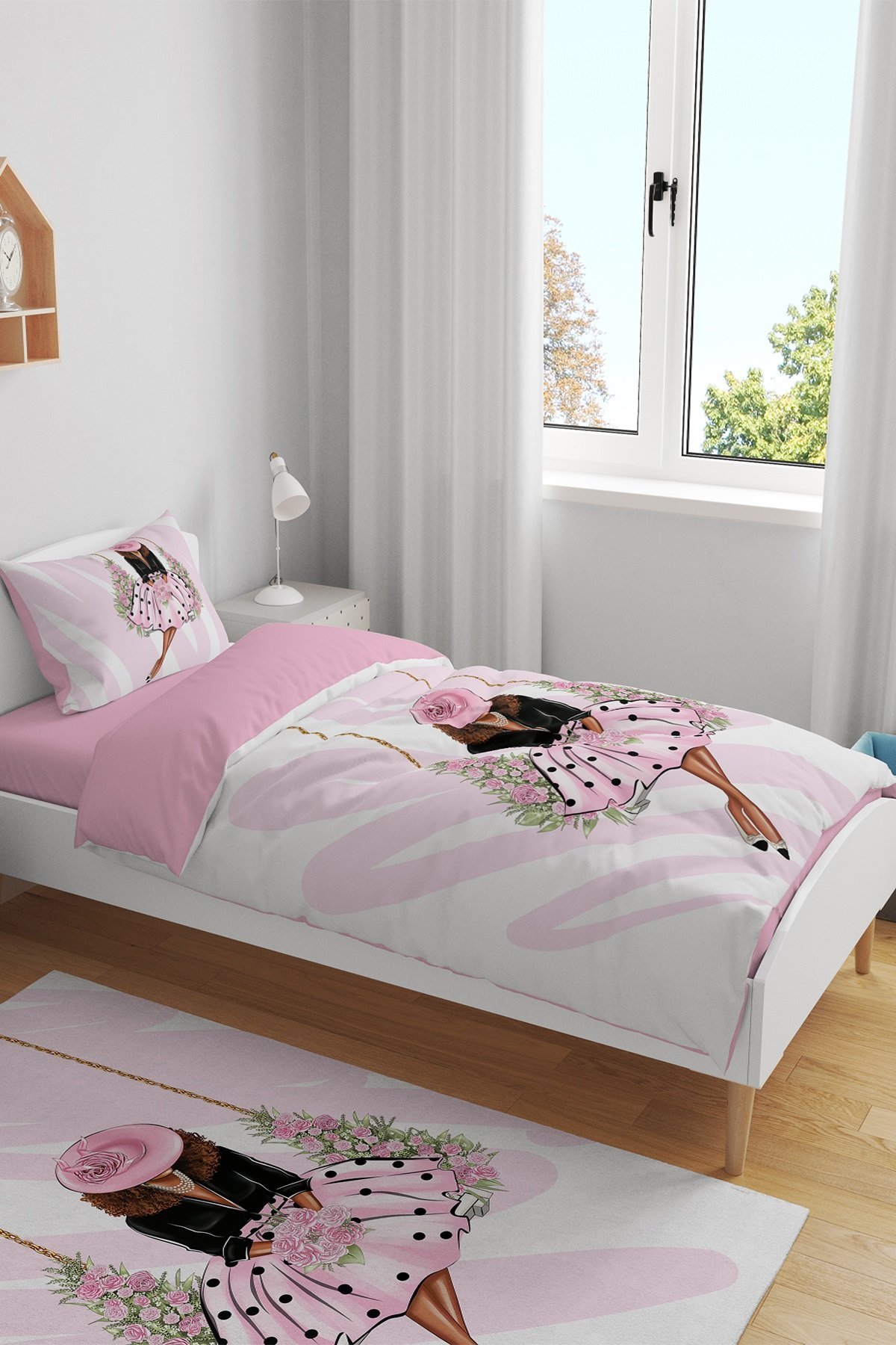 Çiçekli Salıncak Desenli Tek Kişilik Bebek Çocuk Nevresim Seti