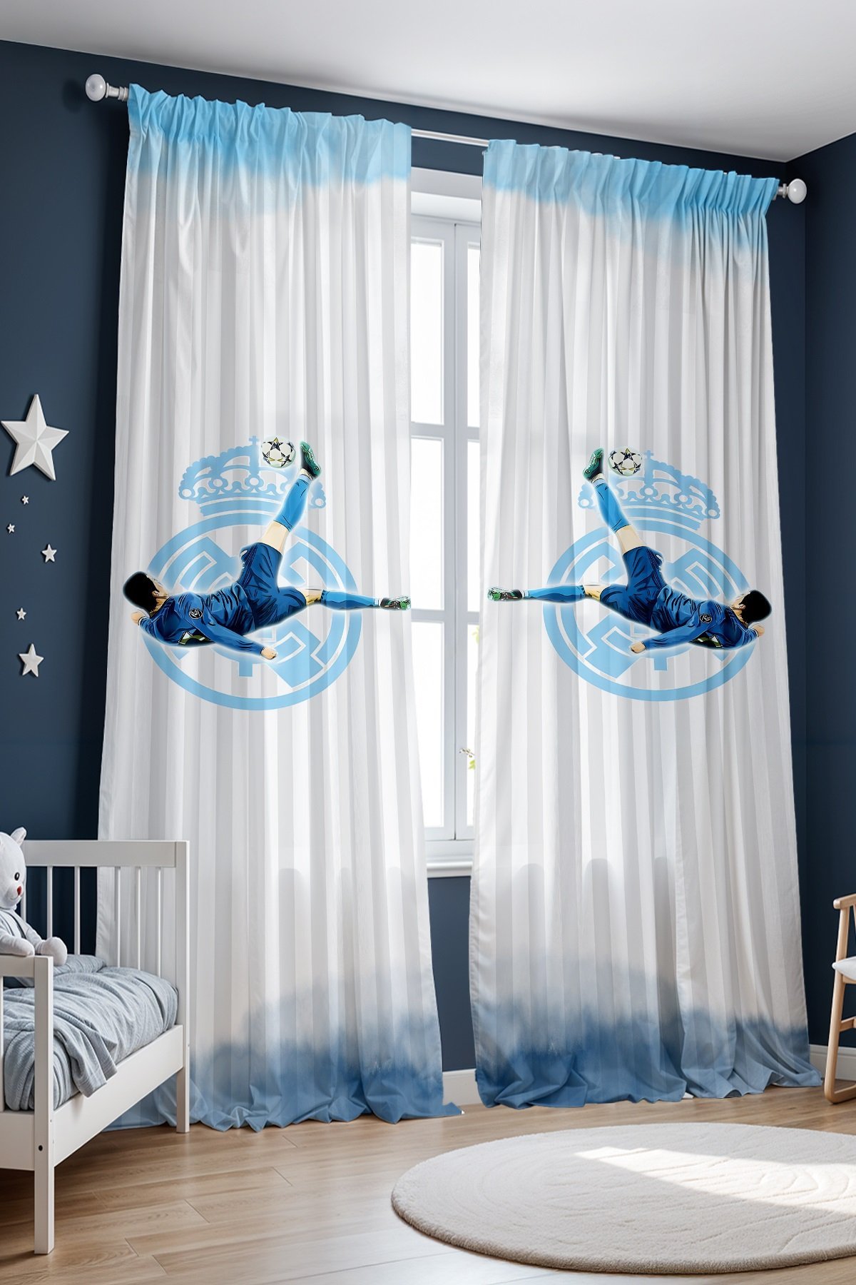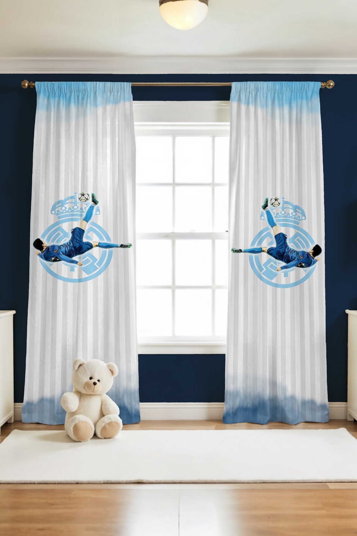 Çizgili Mavi Formalı Futbolcu Desenli Çocuk Bebek Odası Fon Perde (Tek Kanat Fiyatlandırma)