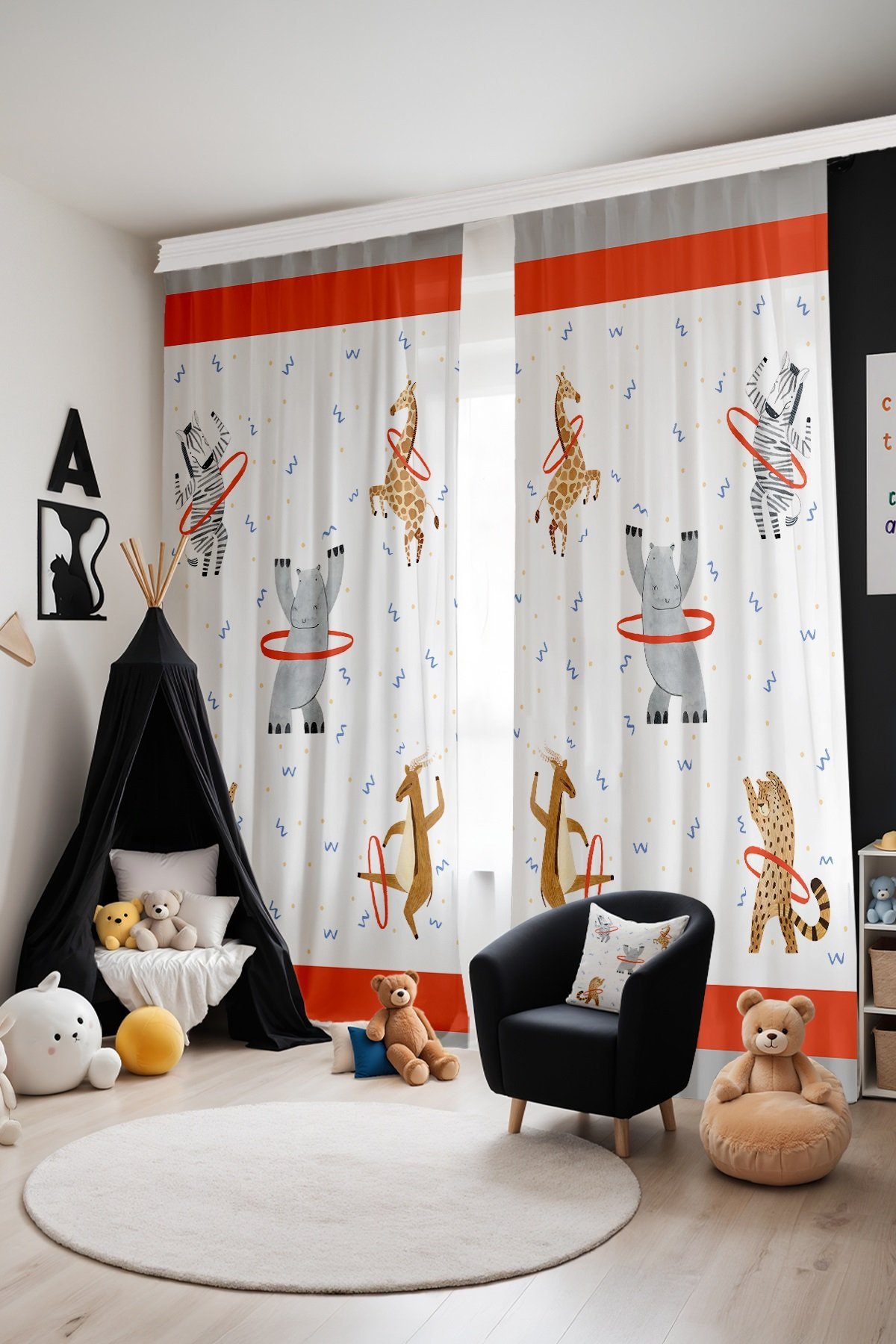 Danscı Sevimli Hayvanlar Desenli Çocuk Bebek Odası Fon Perde (Tek Kanat Fiyatlandırma)