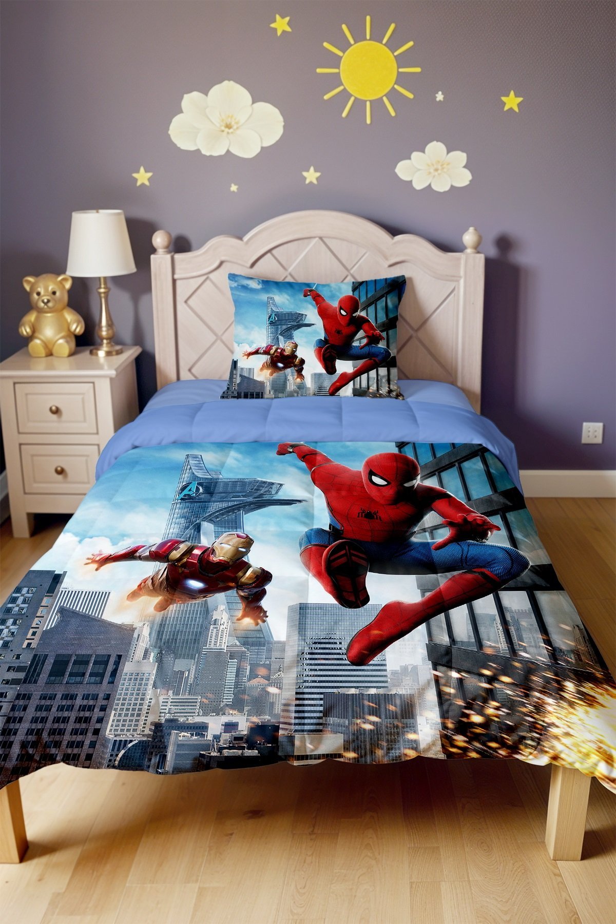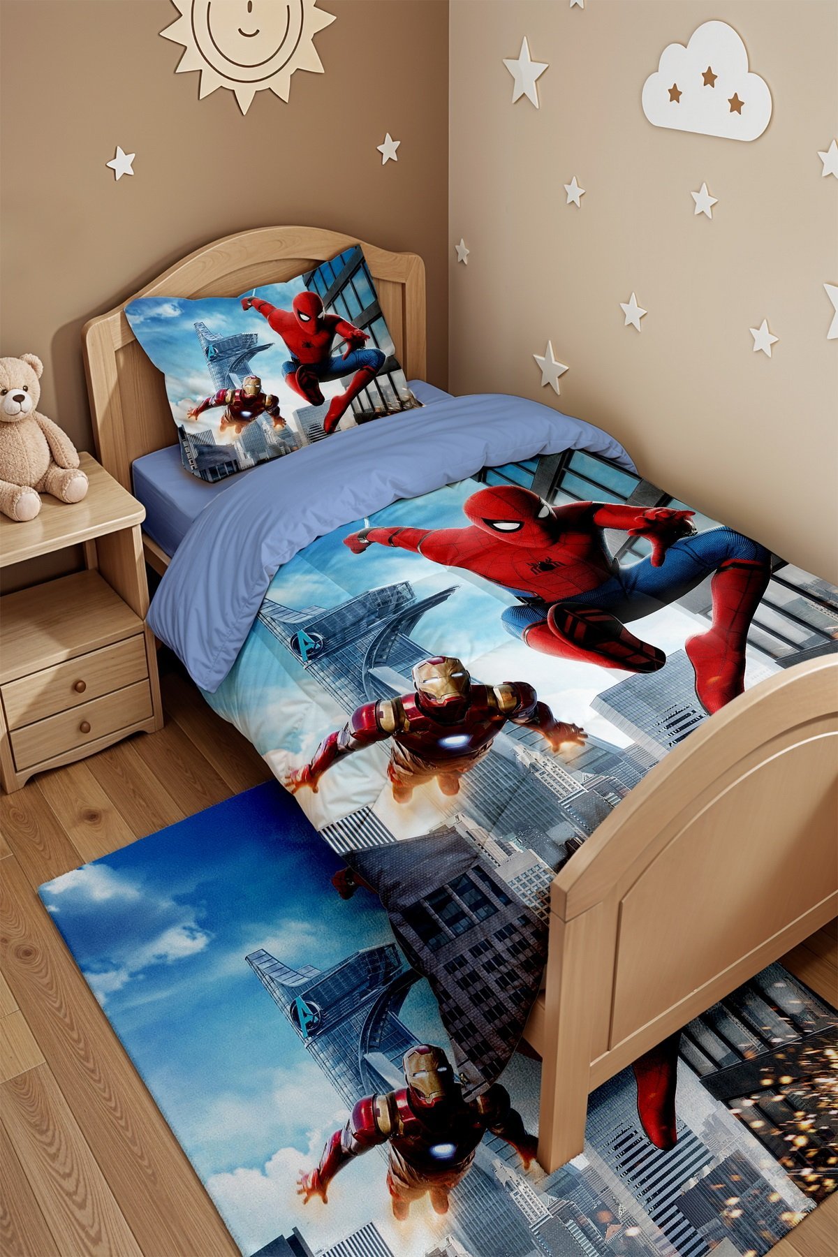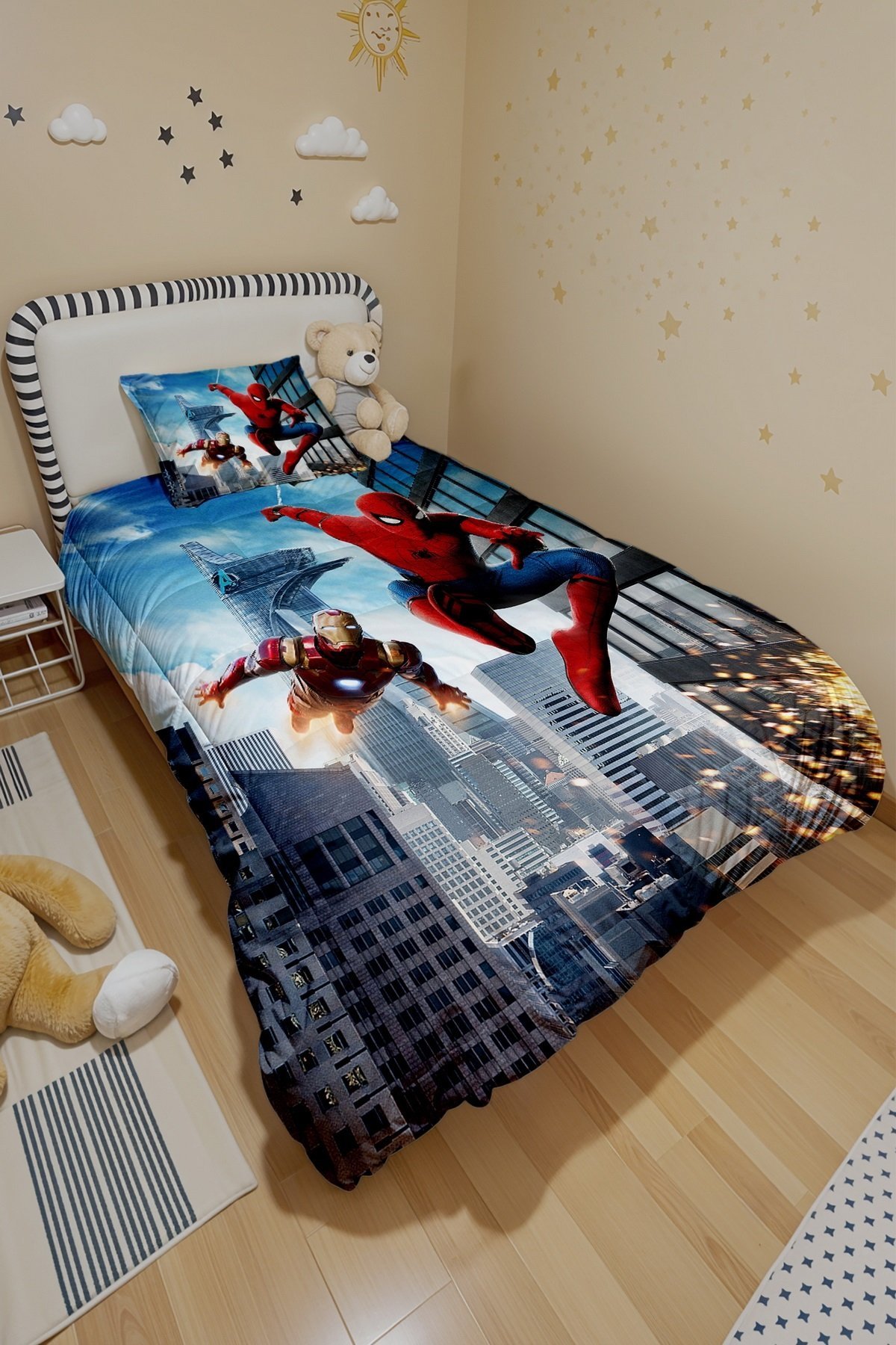 Demir Adam Ve Örümcek Desenli Tek Kişilik Yorgan ve Yastık Kılıfı