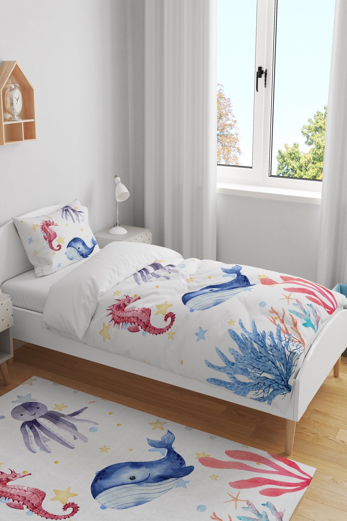 Deniz Hayvanları Desenli Tek Kişilik Bebek Çocuk Nevresim Takımı