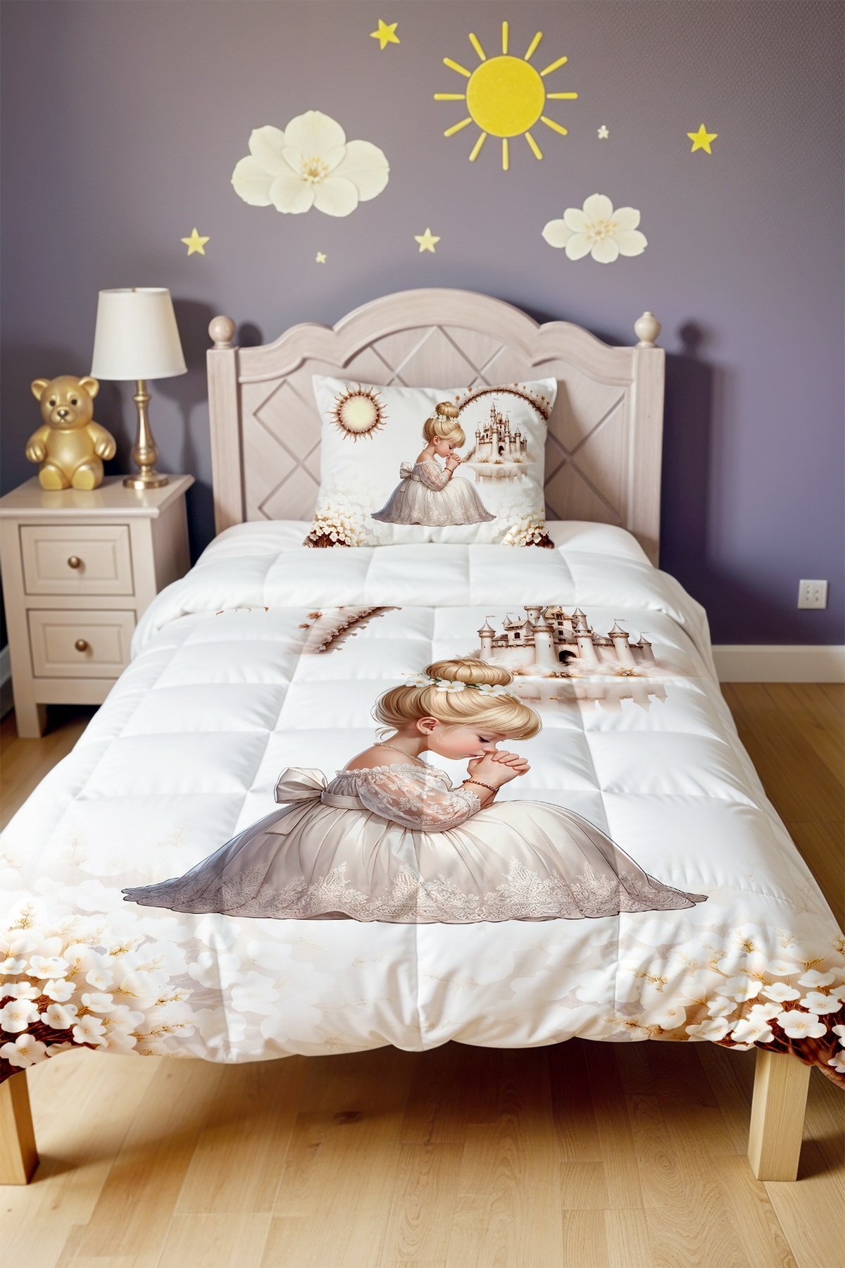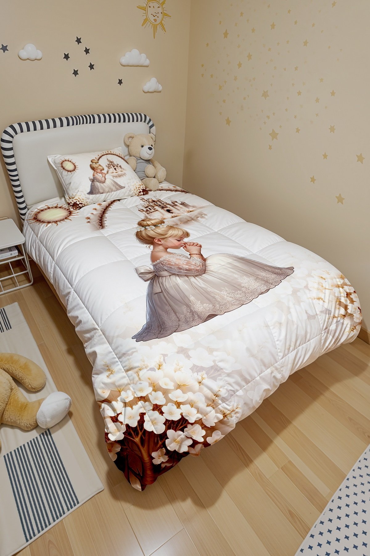 Dilek Perisi Desenli Tek Kişilik Yorgan ve Yastık Kılıfı