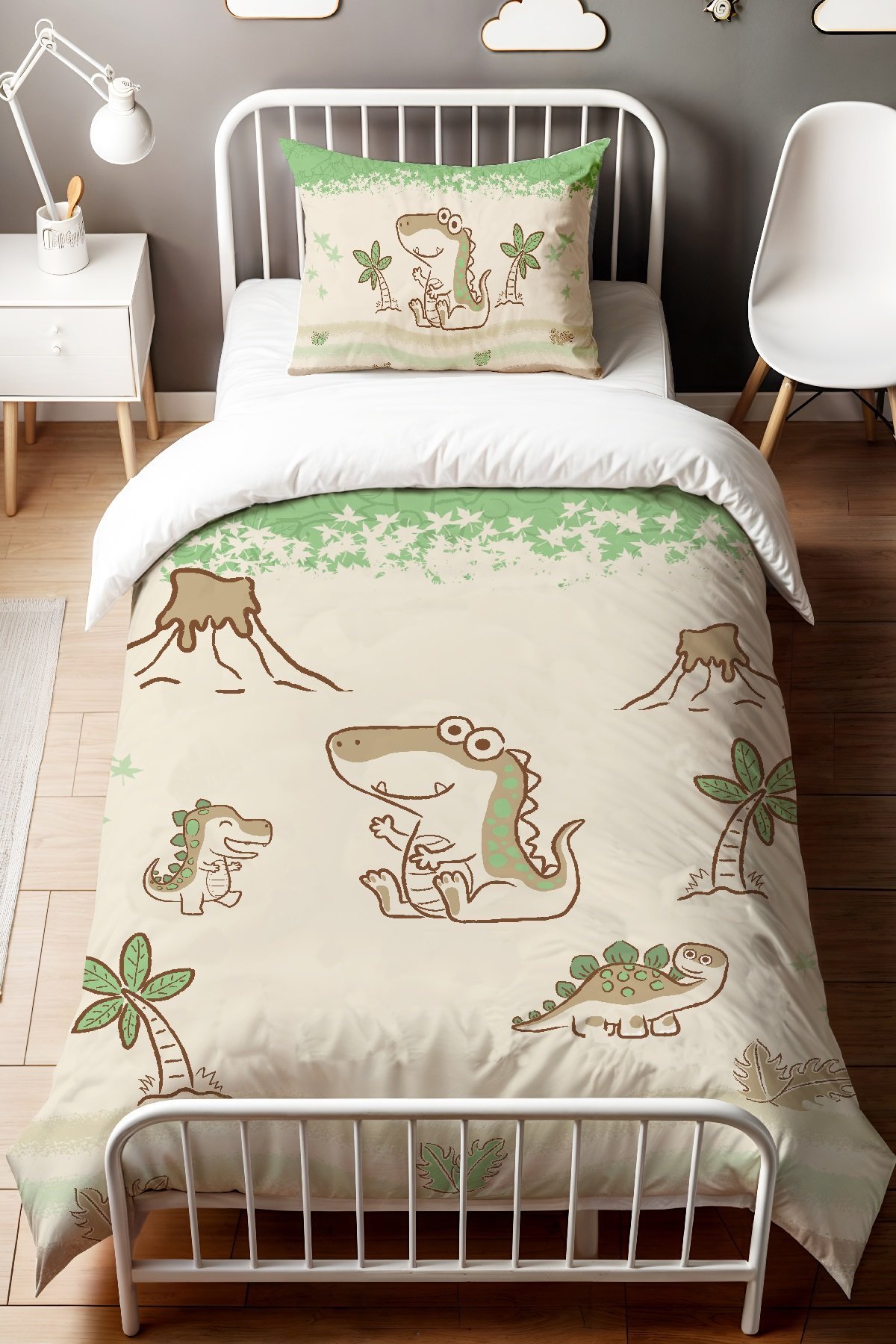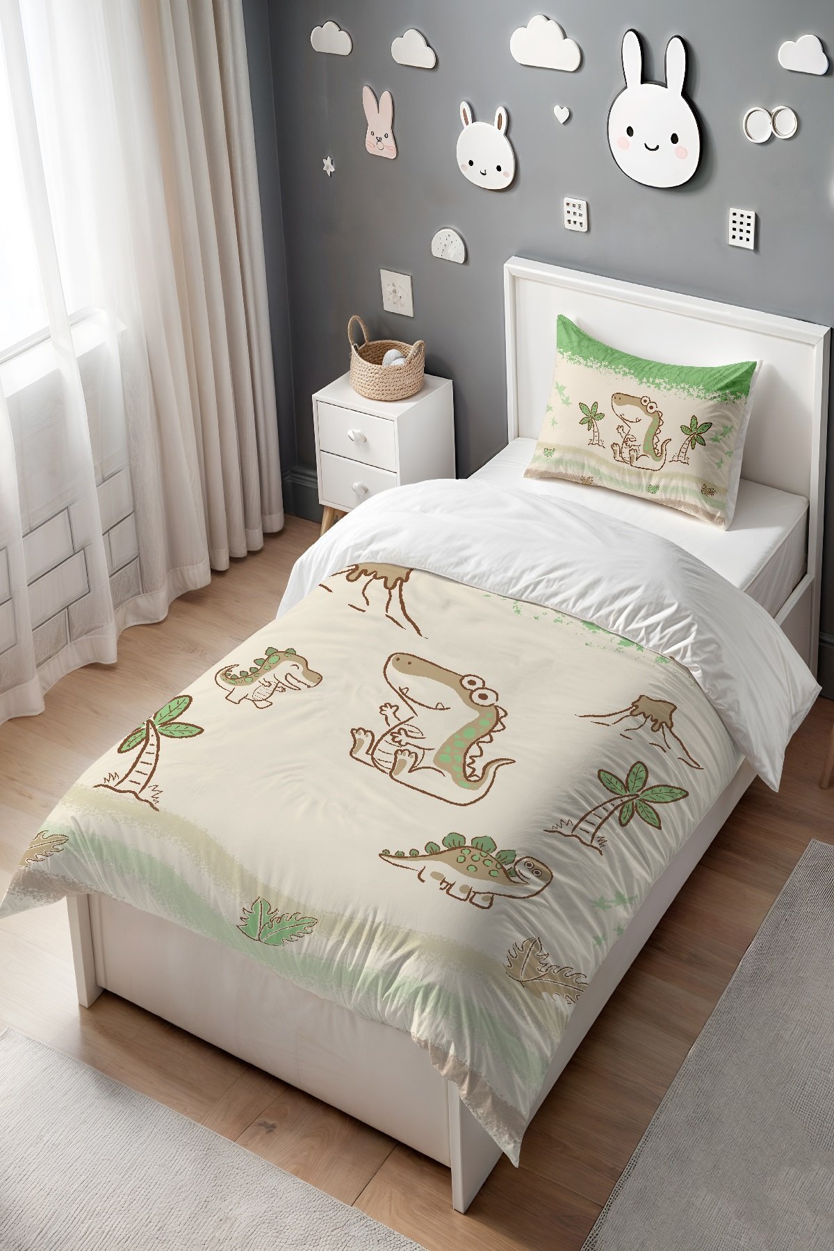 Dinazor Çağı Desenli Tek Kişilik Bebek Çocuk Nevresim Seti