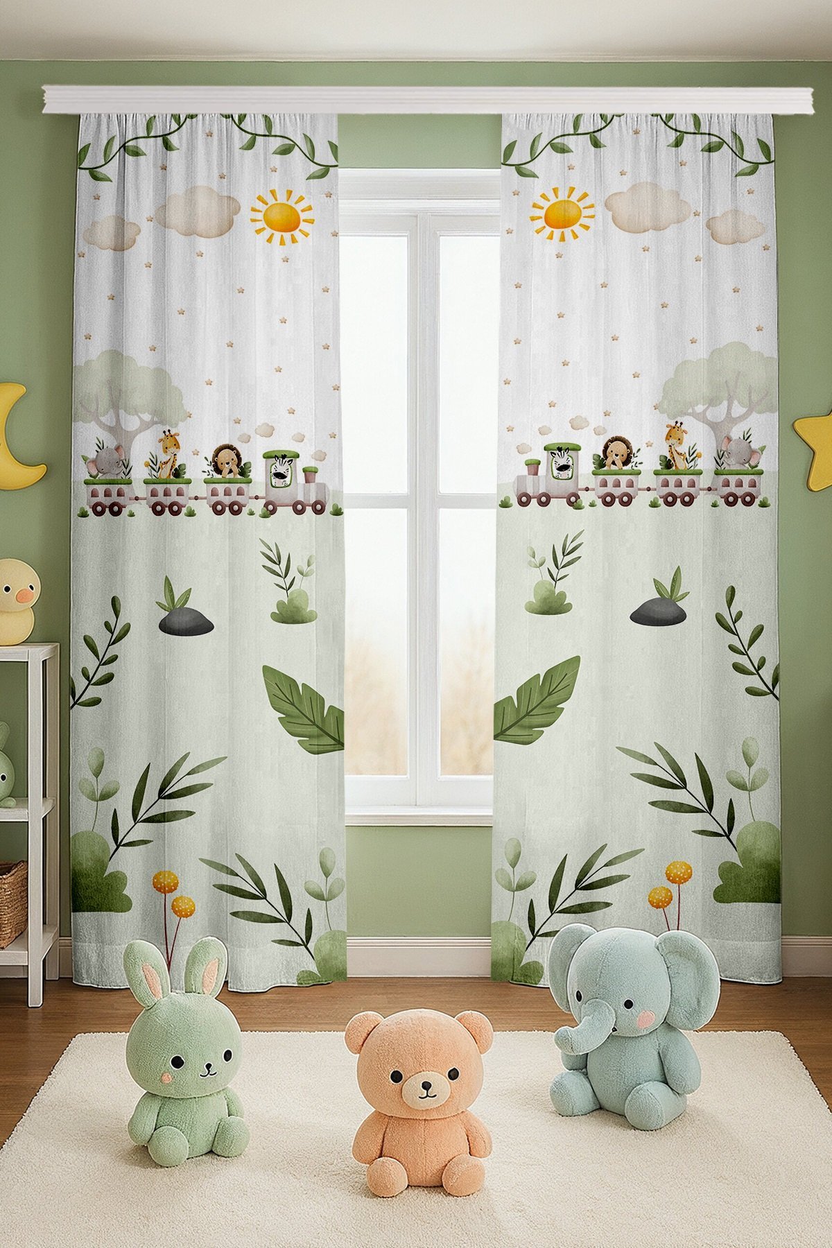 Doğa Safari Treni Desenli Çocuk Bebek Odası Fon Perde (Tek Kanat Fiyatlandırma)