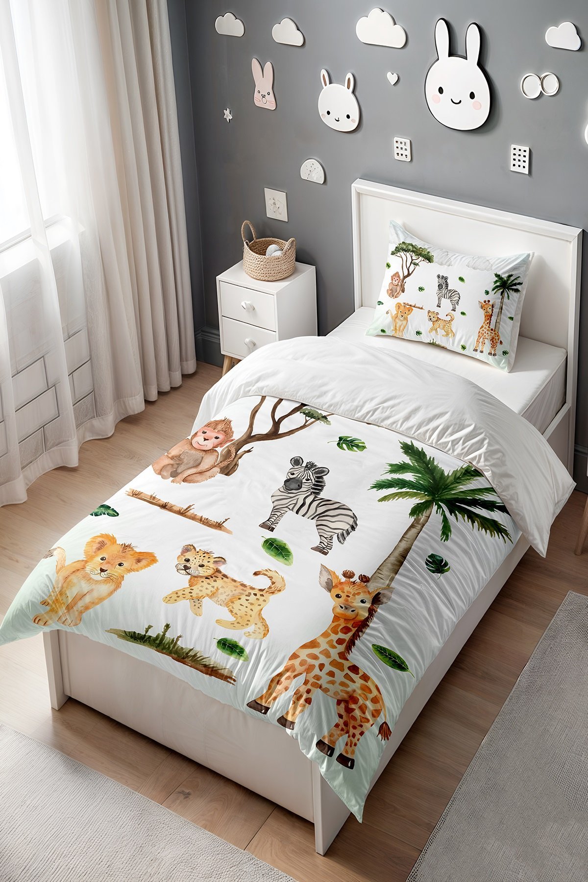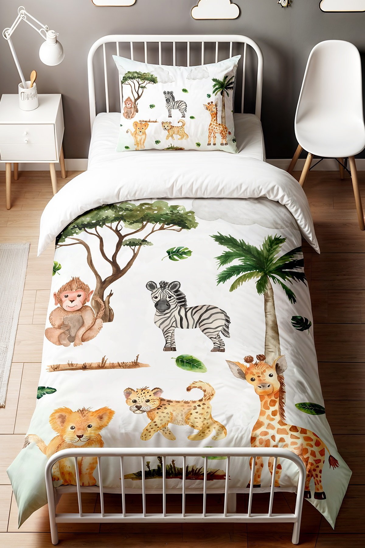 Dökülen Yapraklar ve Safari Desenli Tek Kişilik Bebek Çocuk Nevresim Seti