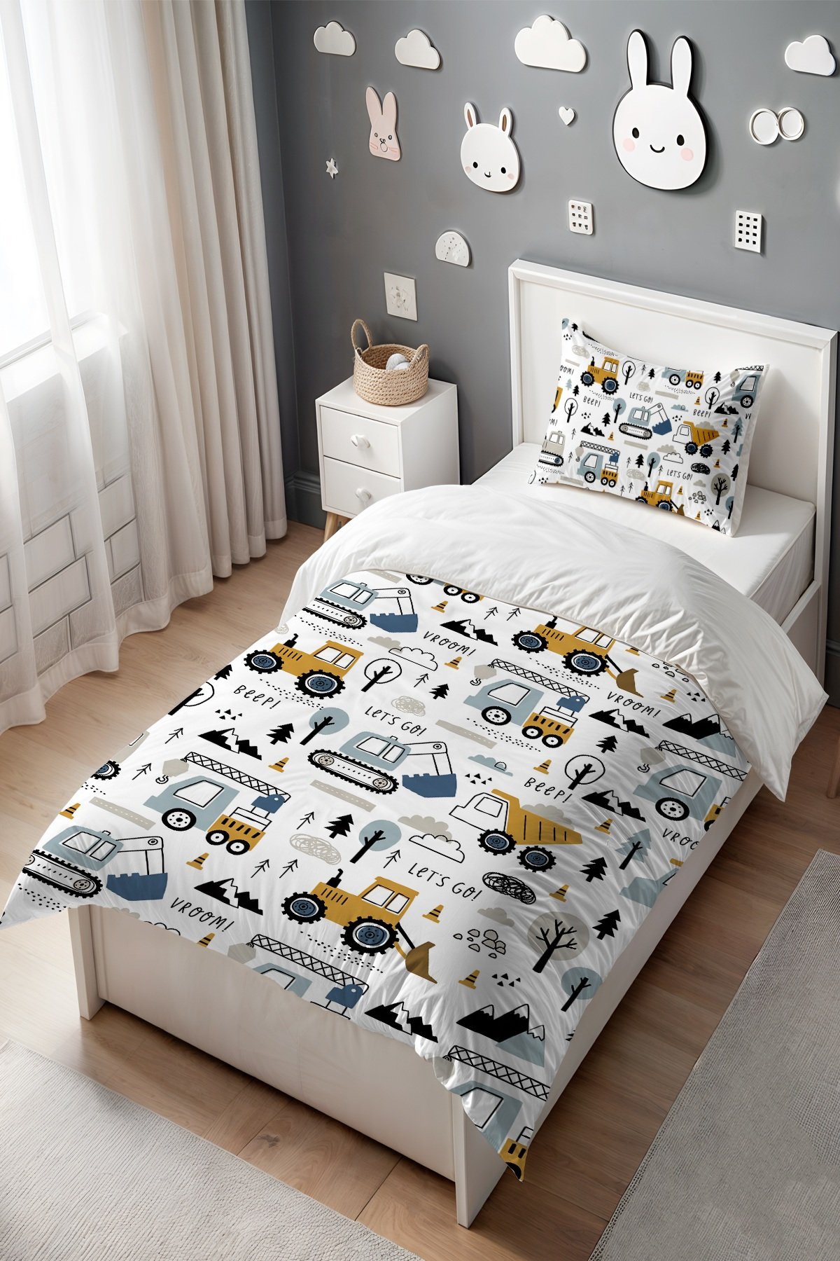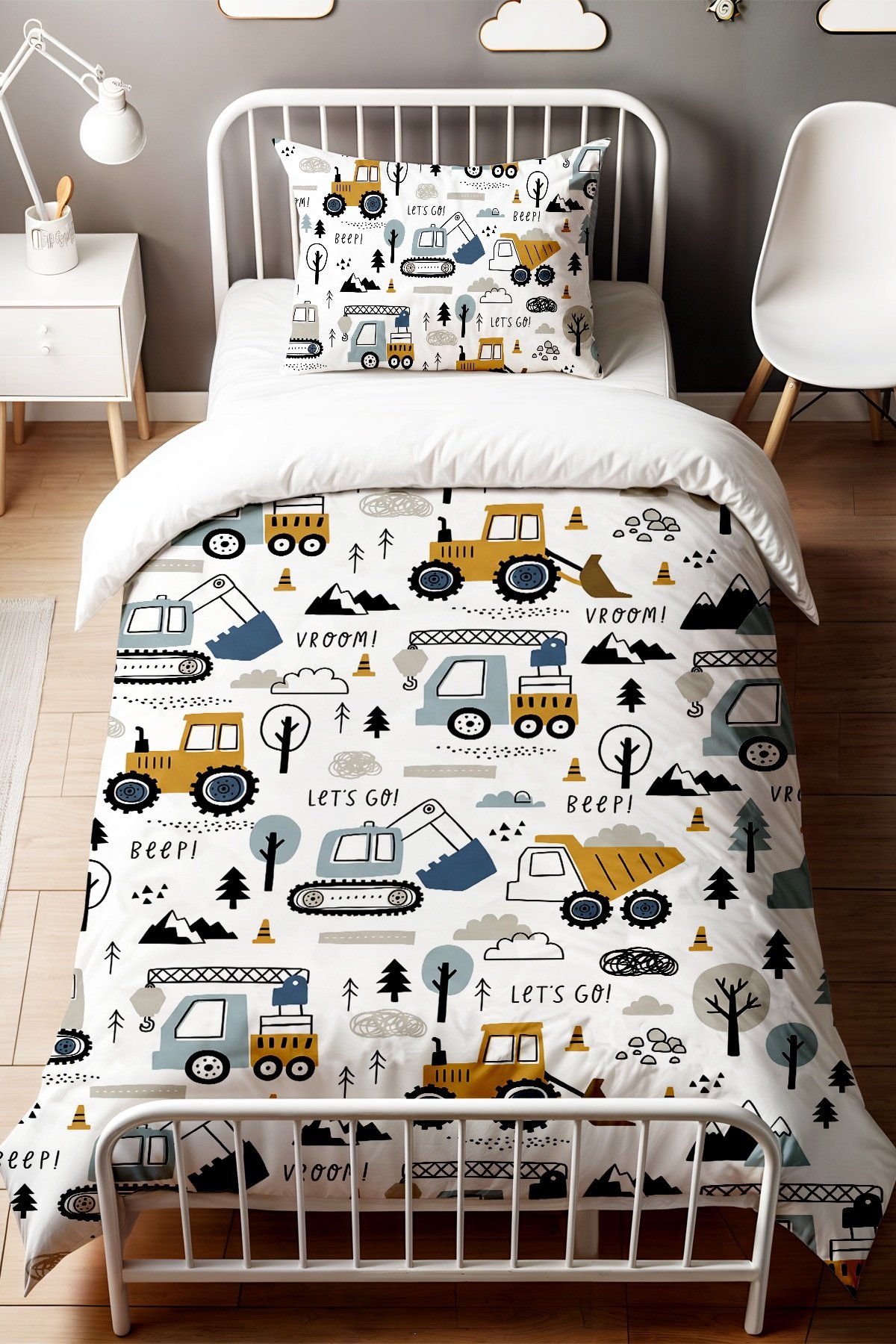 Eğlenceli İnşaat Vakti Desenli Tek Kişilik Bebek Çocuk Nevresim Seti