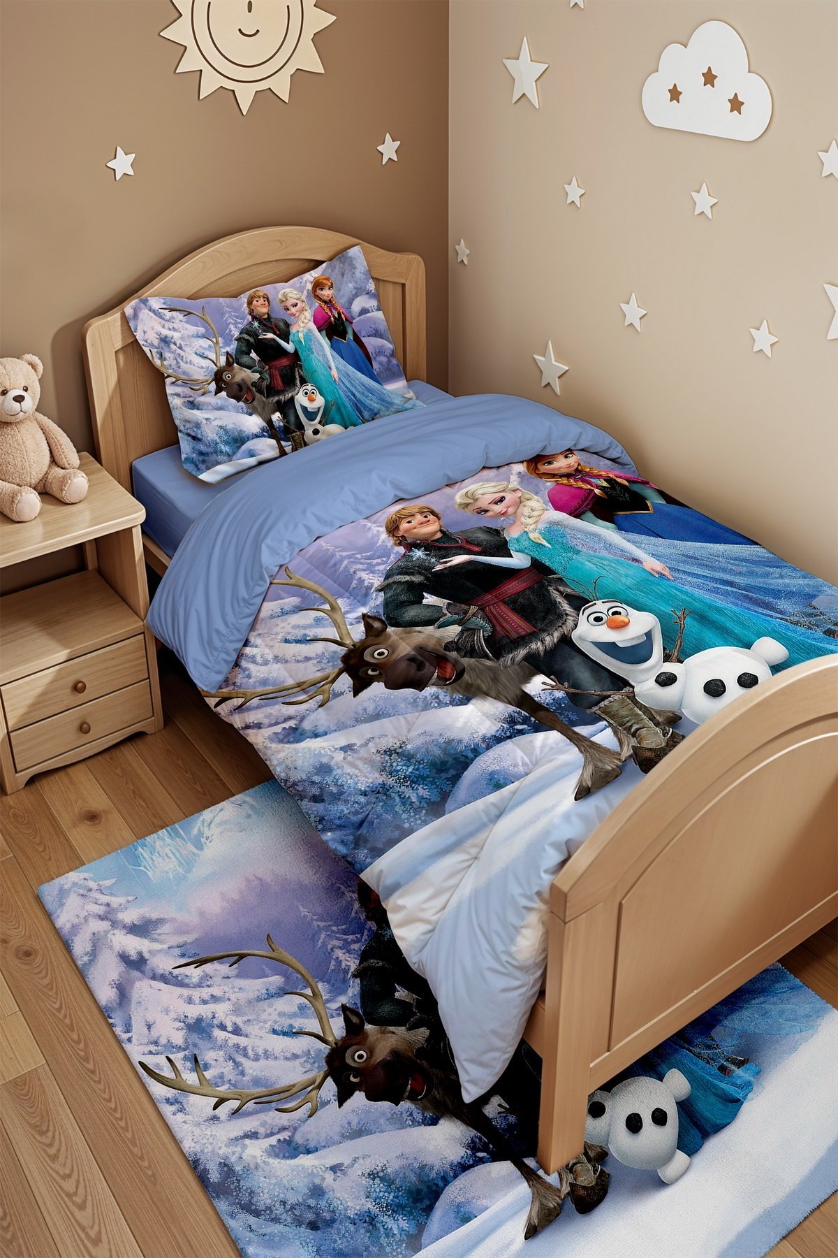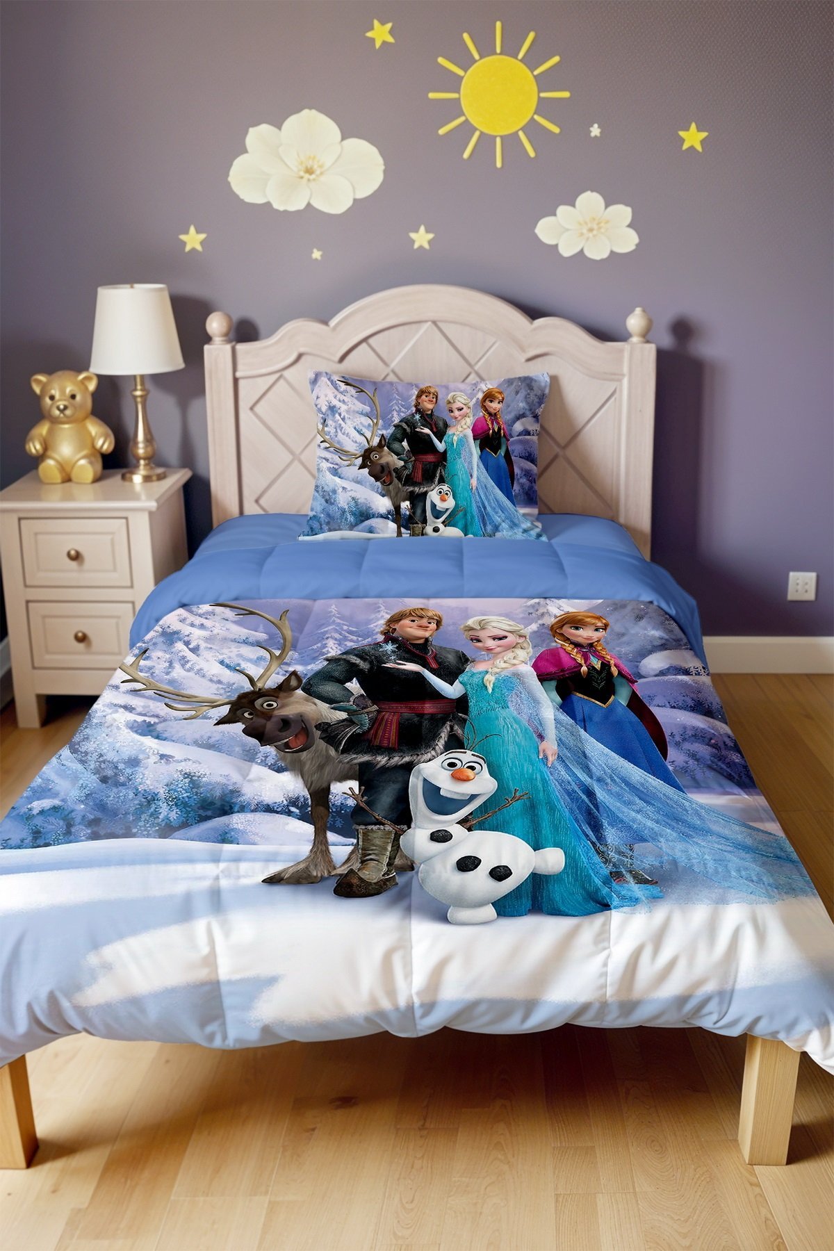 Elsa Ve Dostları Desenli Tek Kişilik Yorgan ve Yastık Kılıfı