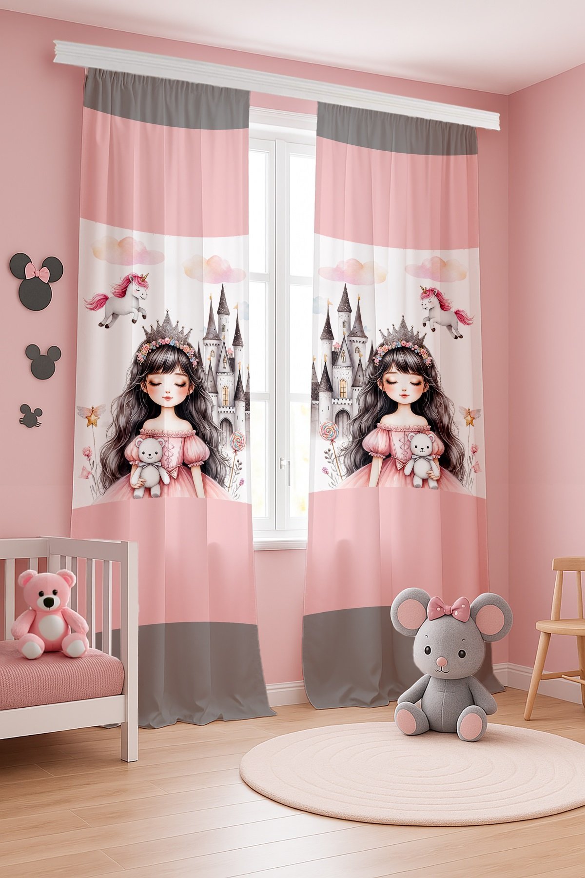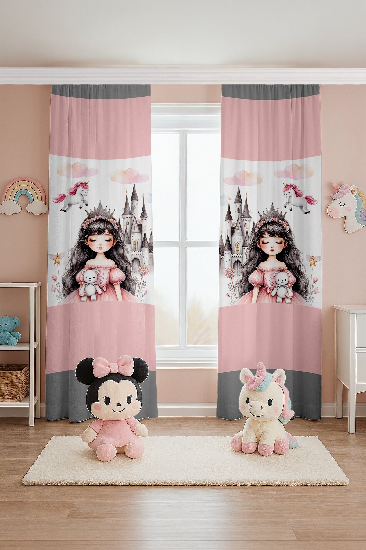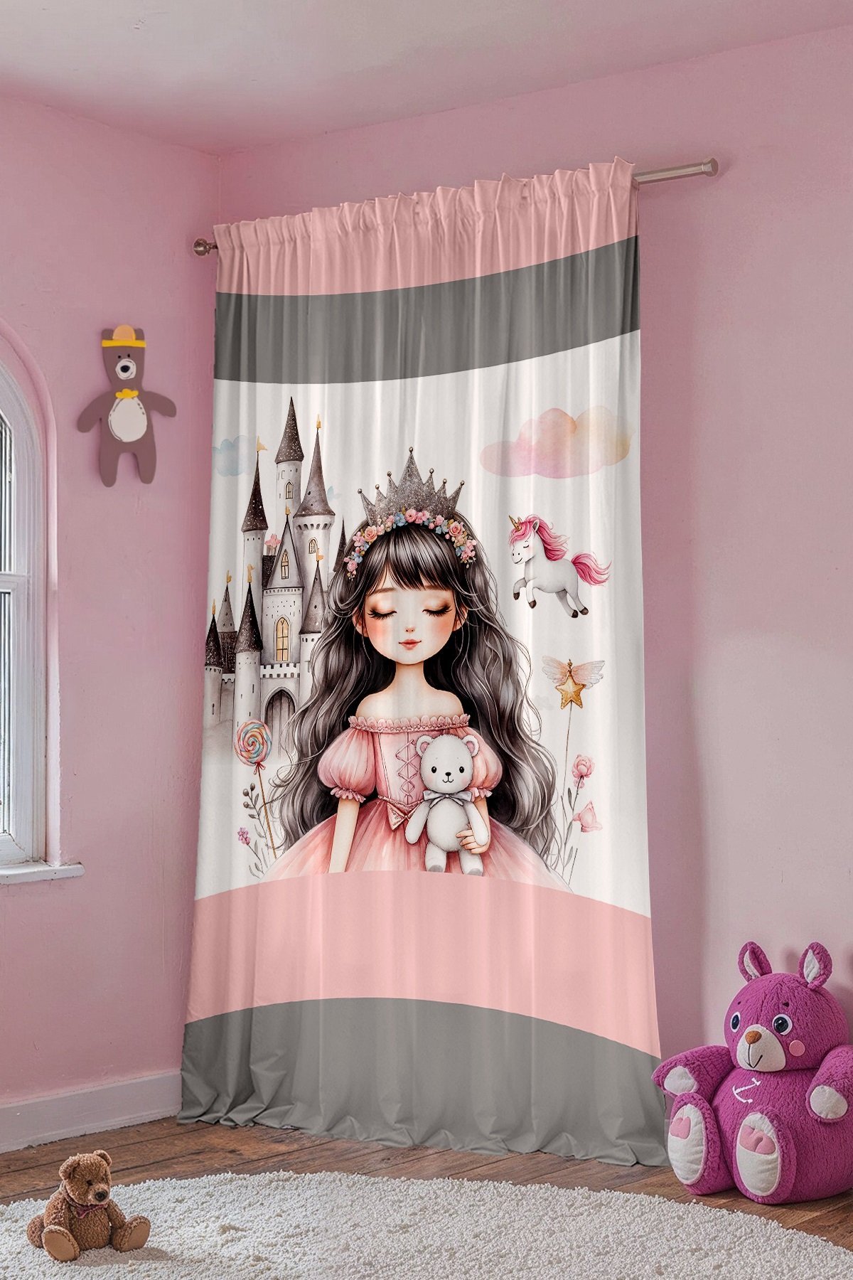 Esmer Prenses Desenli Çocuk Bebek Odası Fon Perde (Tek Kanat Fiyatlandırma)