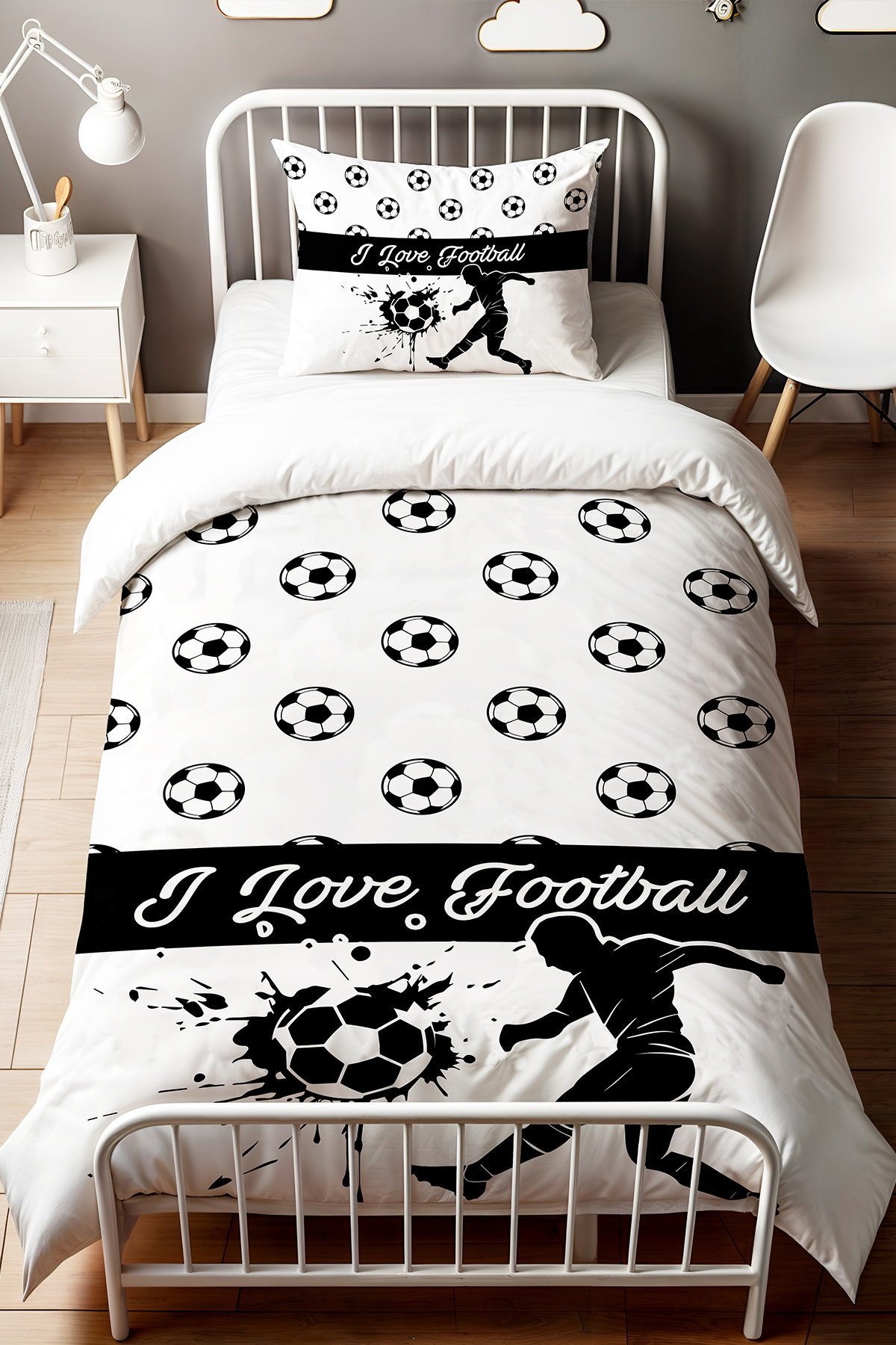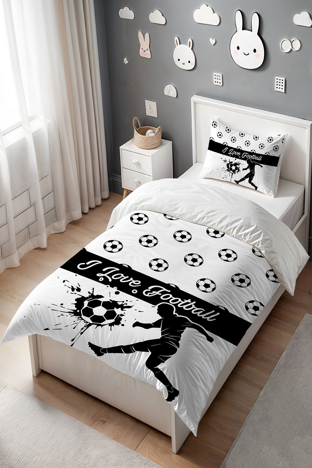 Futbolu Seviyorum Yazılı Desenli Tek Kişilik Bebek Çocuk Nevresim Seti