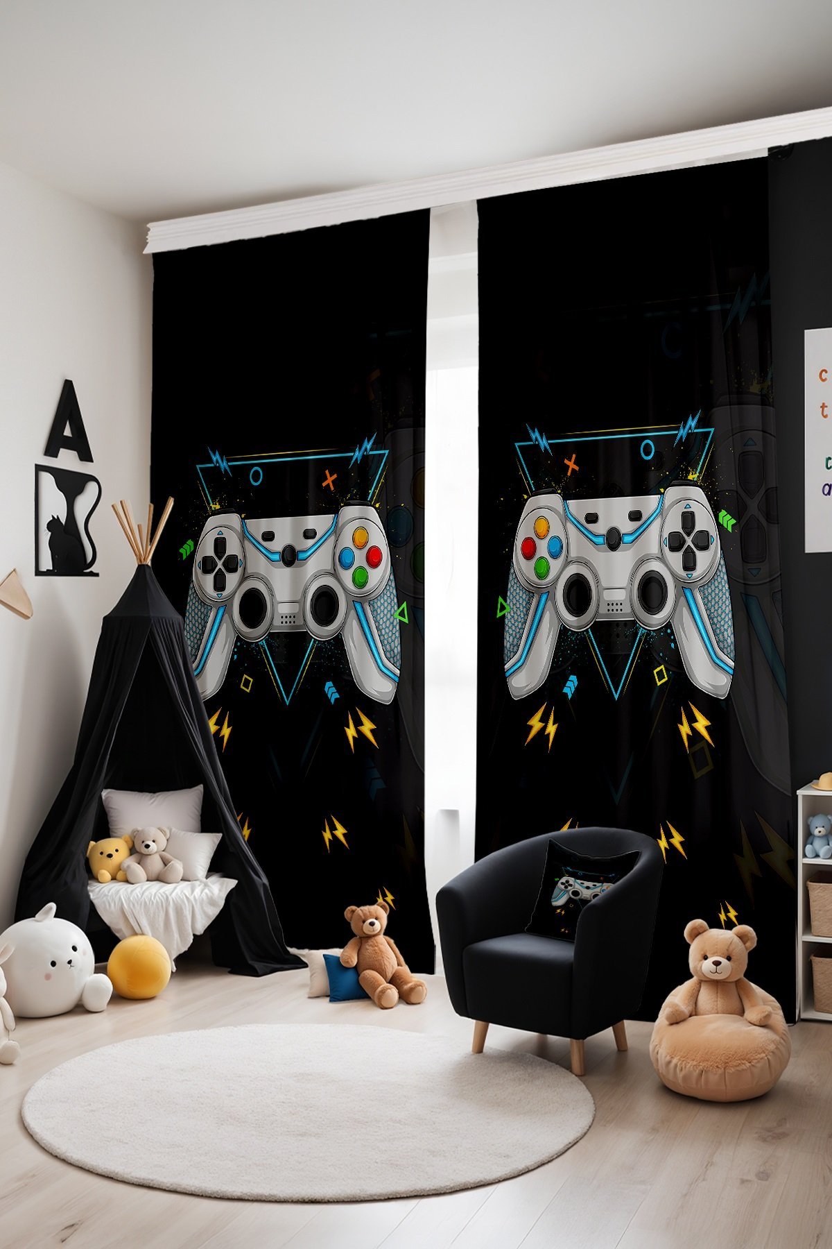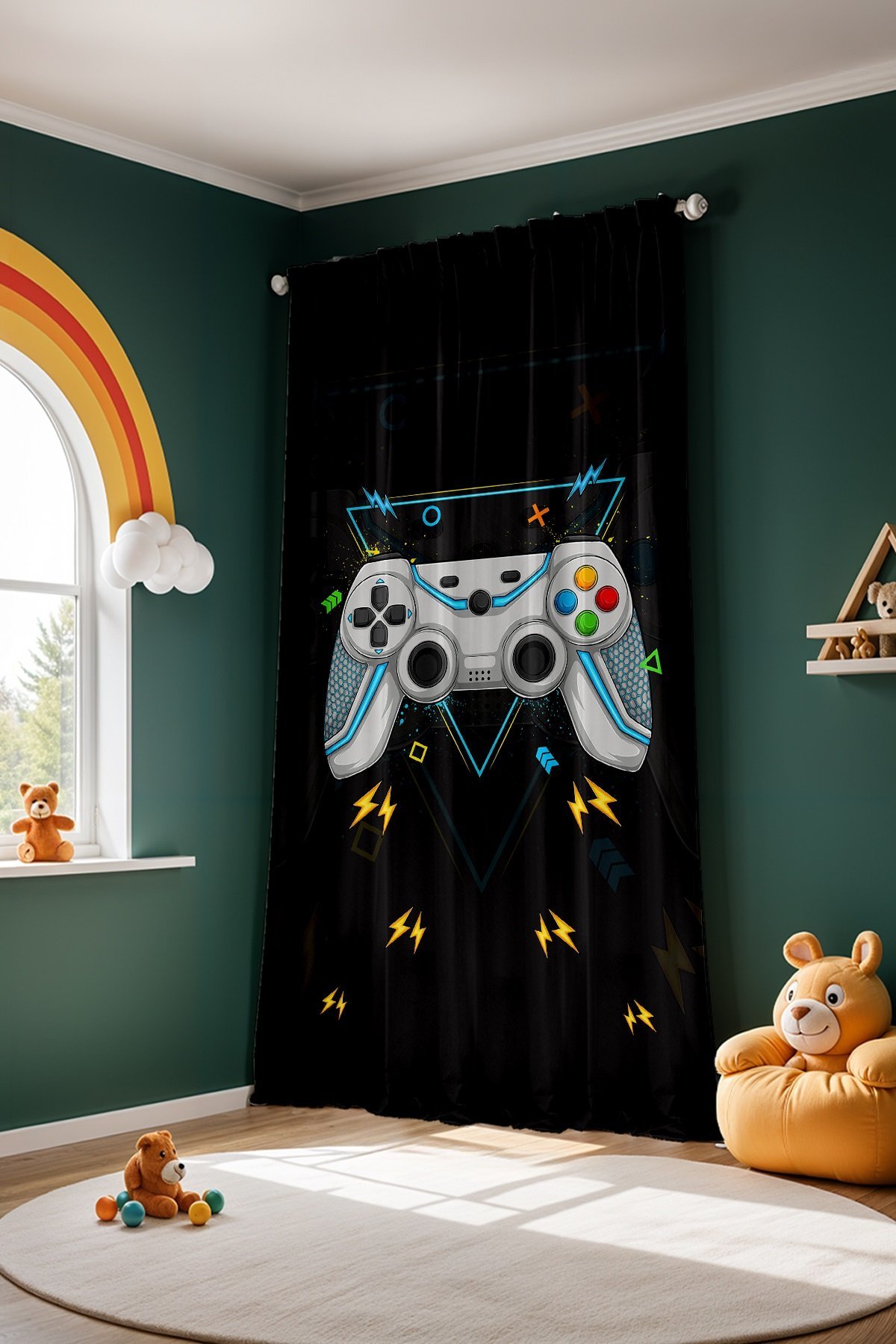 Gamer Oyuncu 1 Desenli Çocuk Bebek Odası Fon Perde (Tek Kanat Fiyatlandırma)