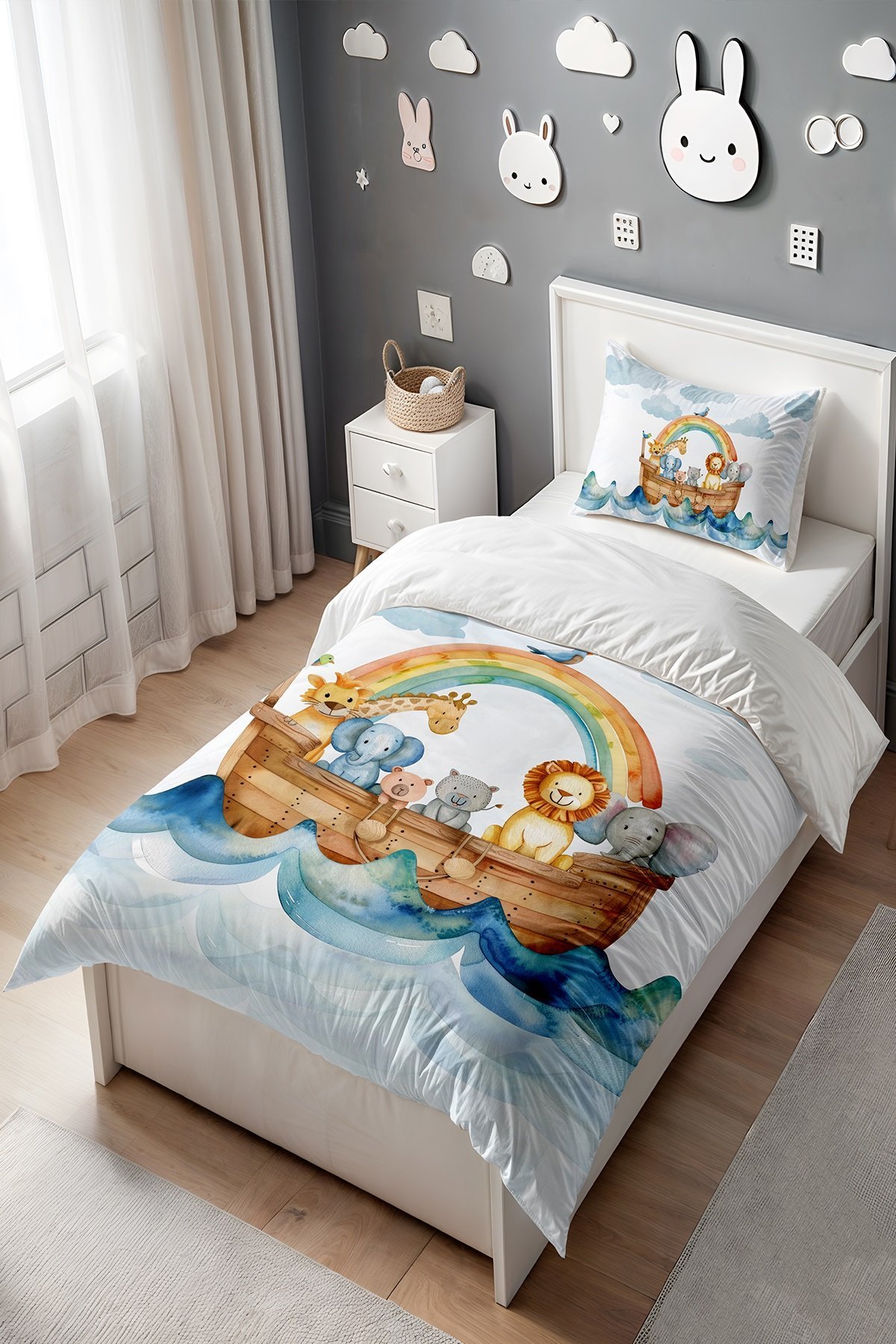Gemideki Safari Desenli Tek Kişilik Bebek Çocuk Nevresim Seti