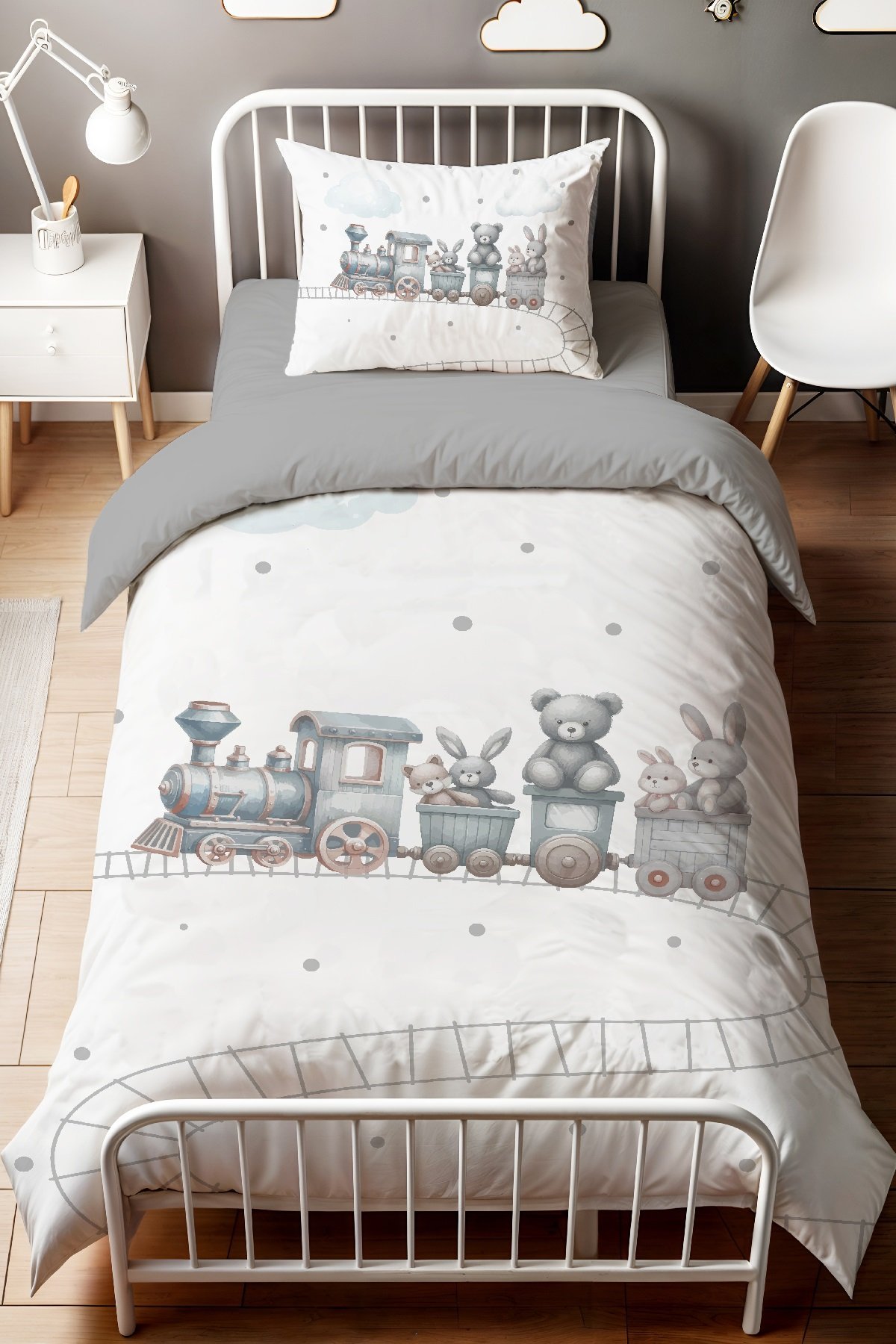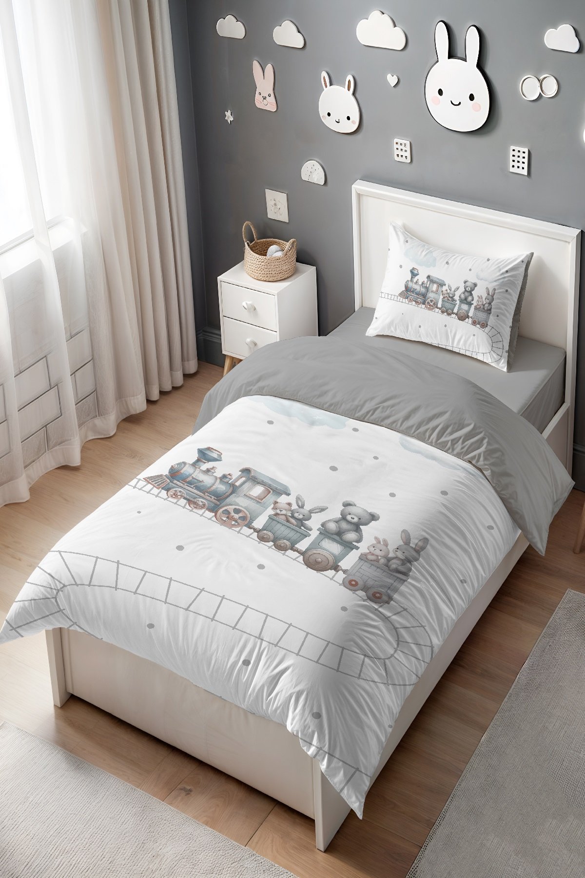 Gezgin Tren Desenli Tek Kişilik Bebek Çocuk Nevresim Seti