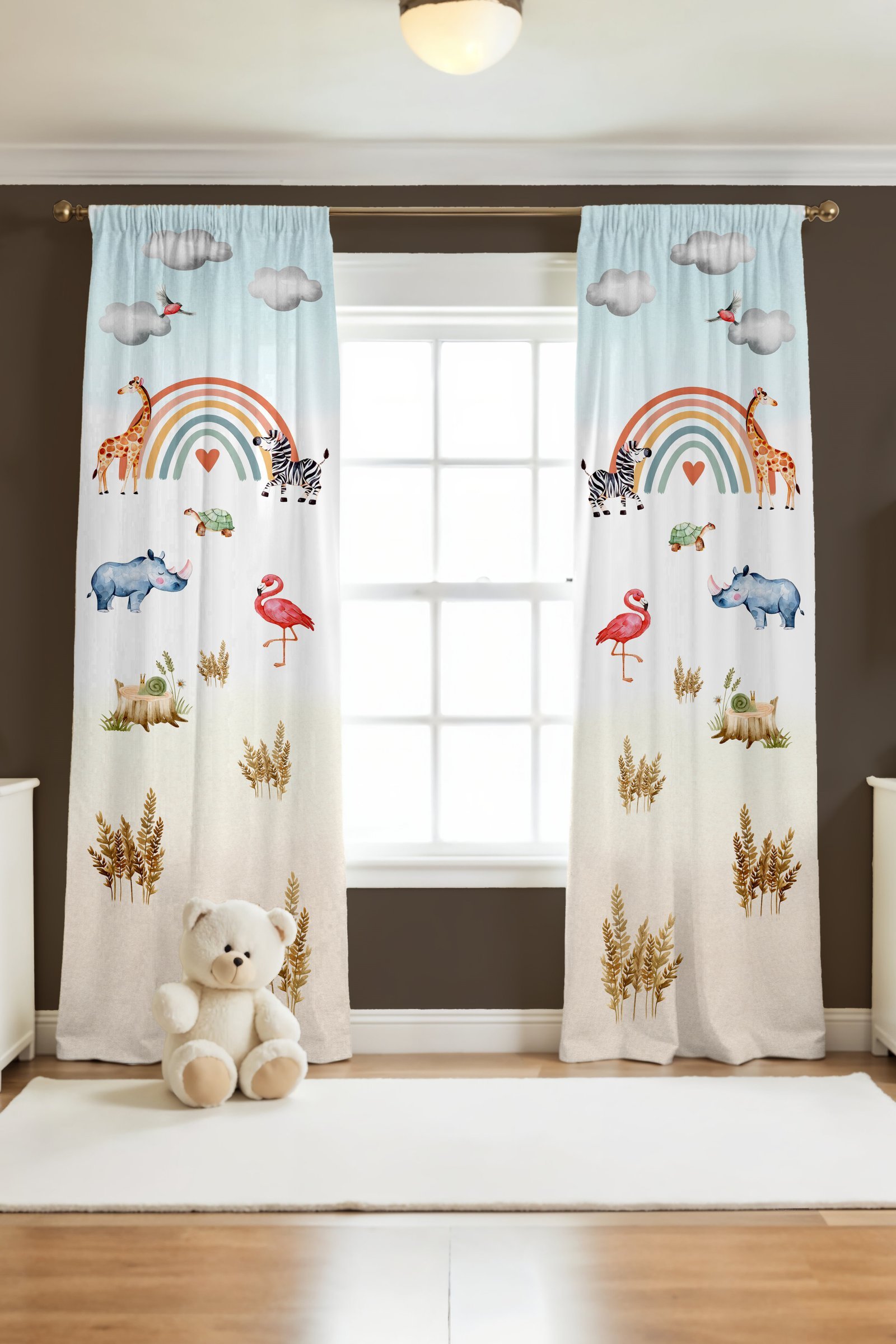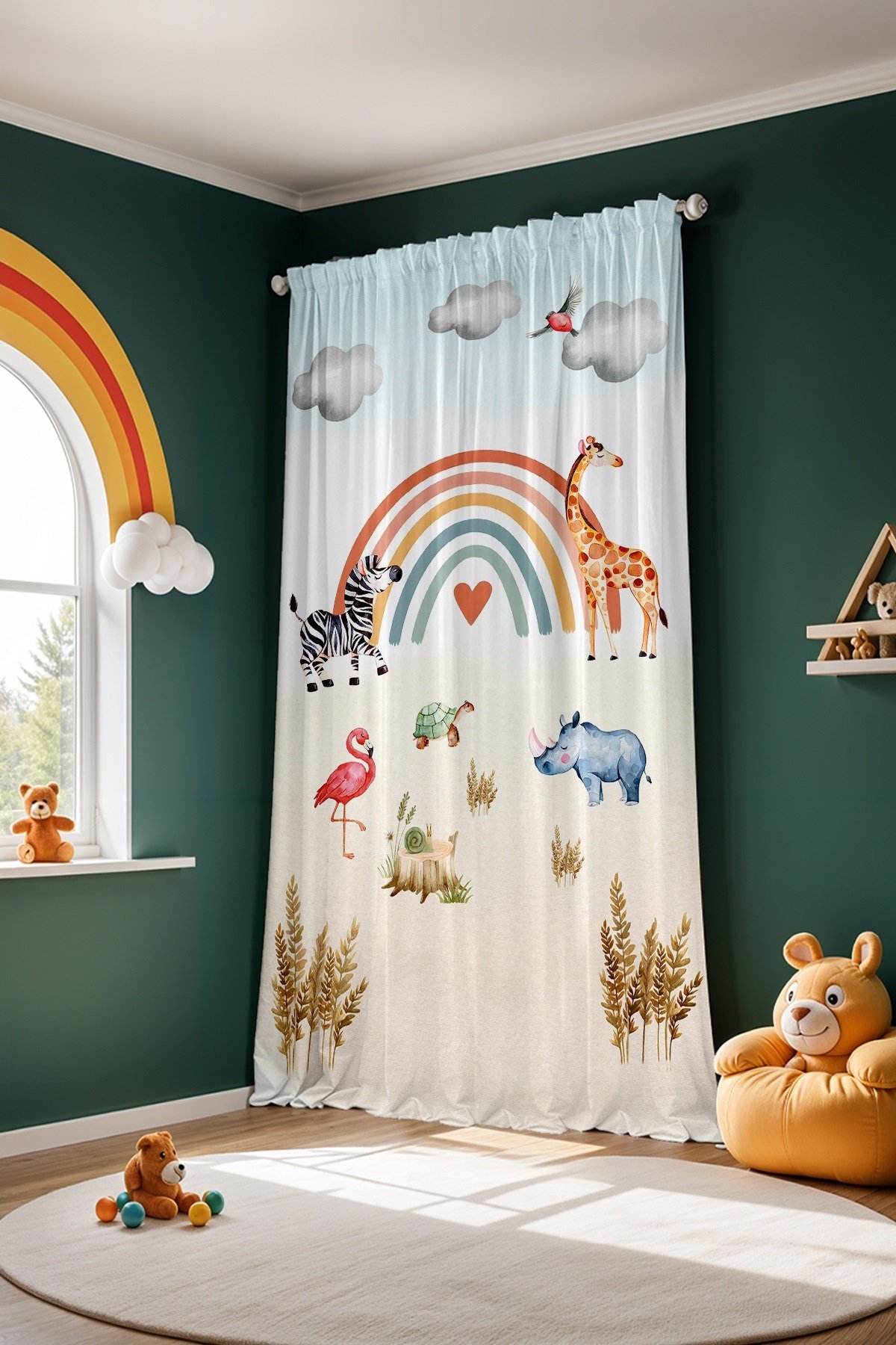 Gökkuşağı Doğa Safari Desenli Çocuk Bebek Odası Fon Perde (Tek Kanat Fiyatlandırma)