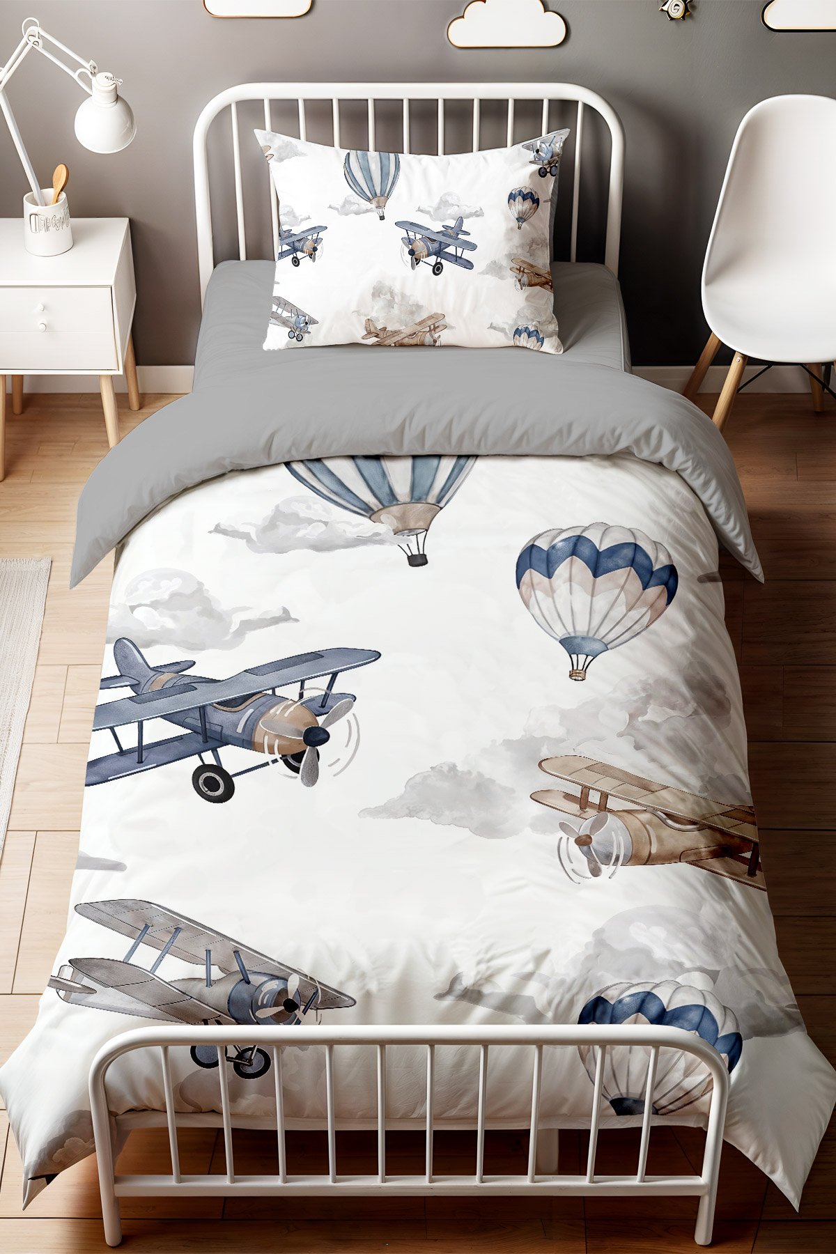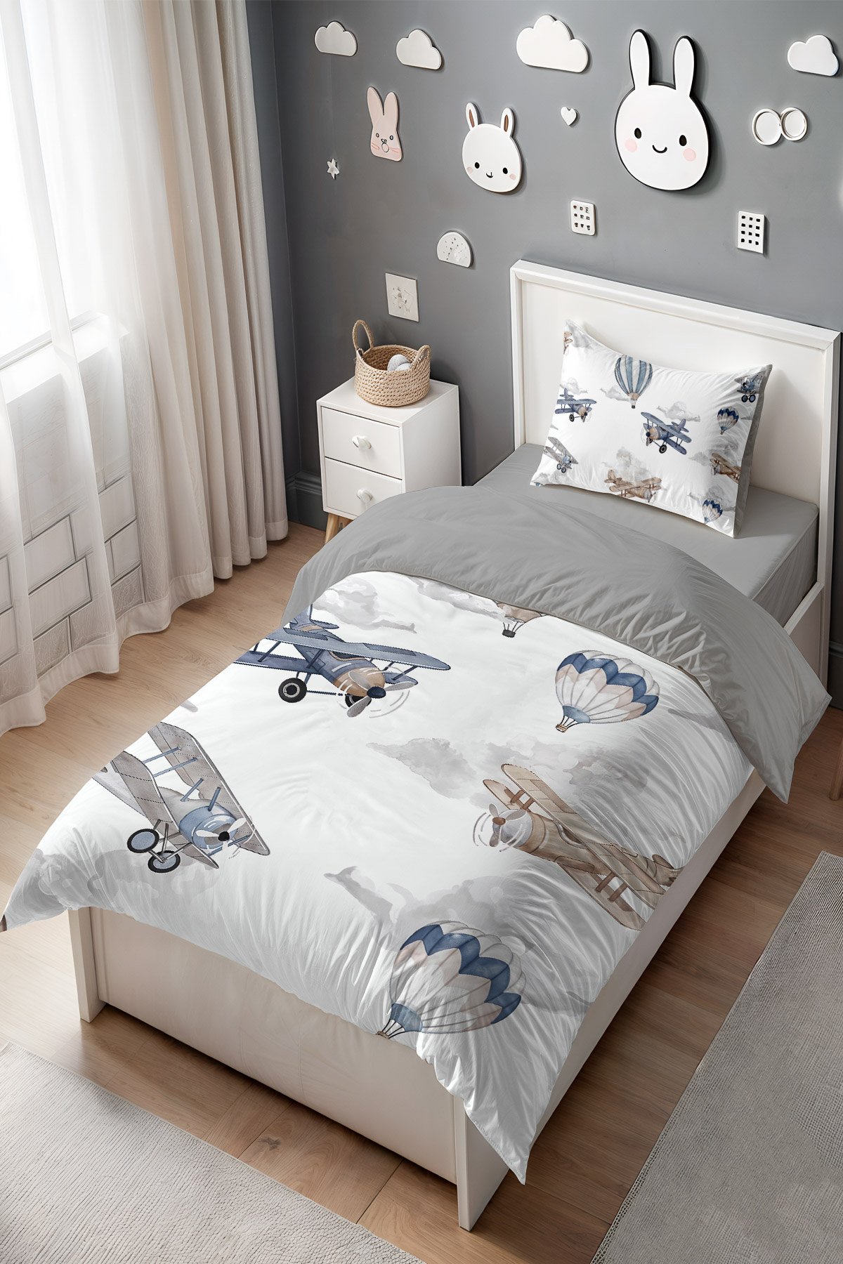 Gökyüzü Macerası Desenli Tek Kişilik Bebek Çocuk Nevresim Seti