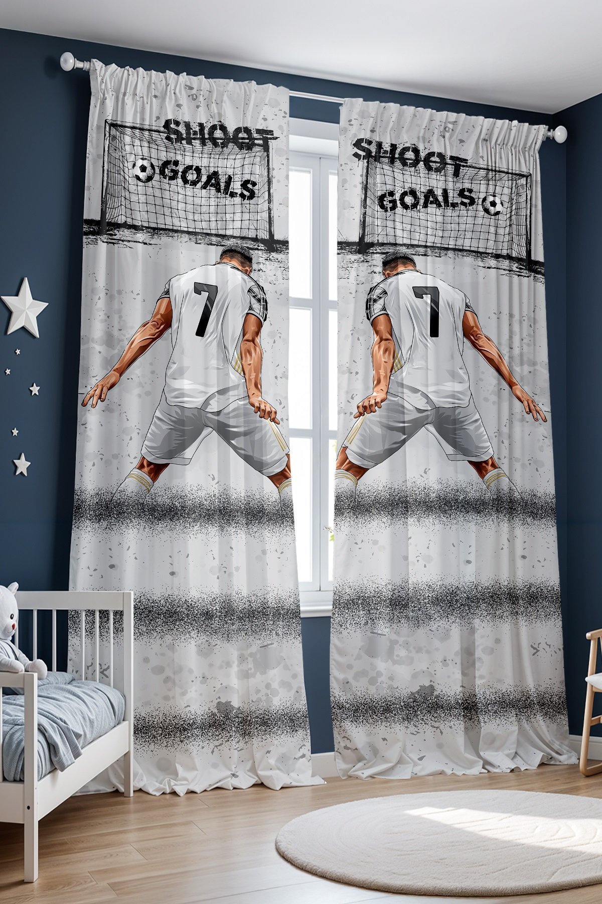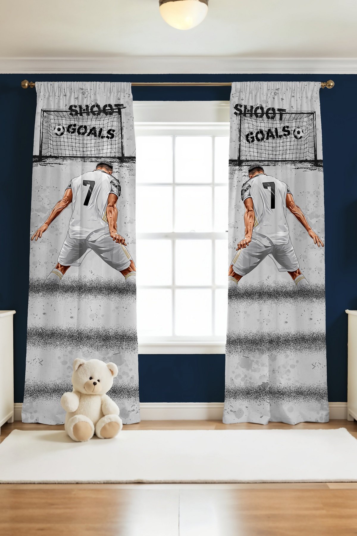 Gri 7 Numaralı Sporcu Desenli Çocuk Bebek Odası Fon Perde (Tek Kanat Fiyatlandırma)