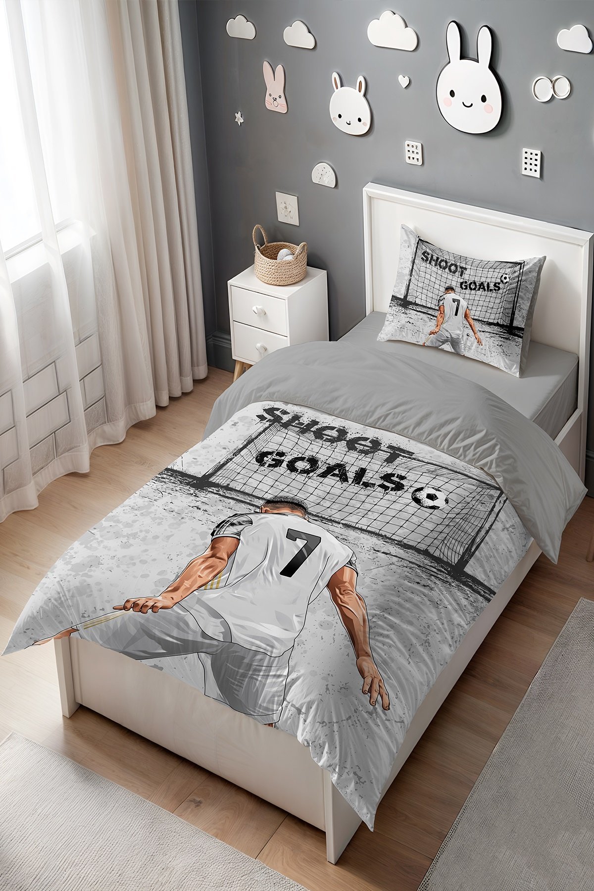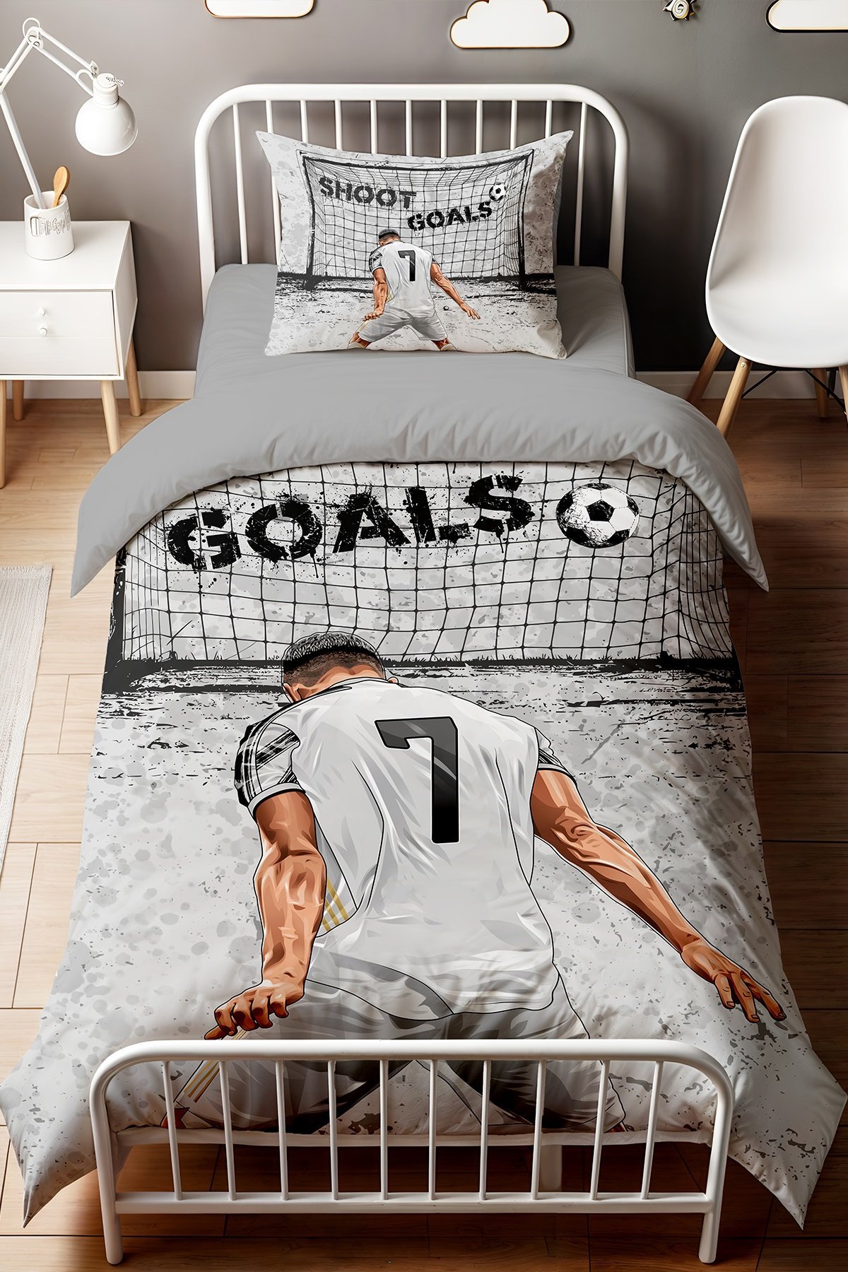 Gri 7 Numaralı Sporcu Desenli Tek Kişilik Bebek Çocuk Nevresim Seti