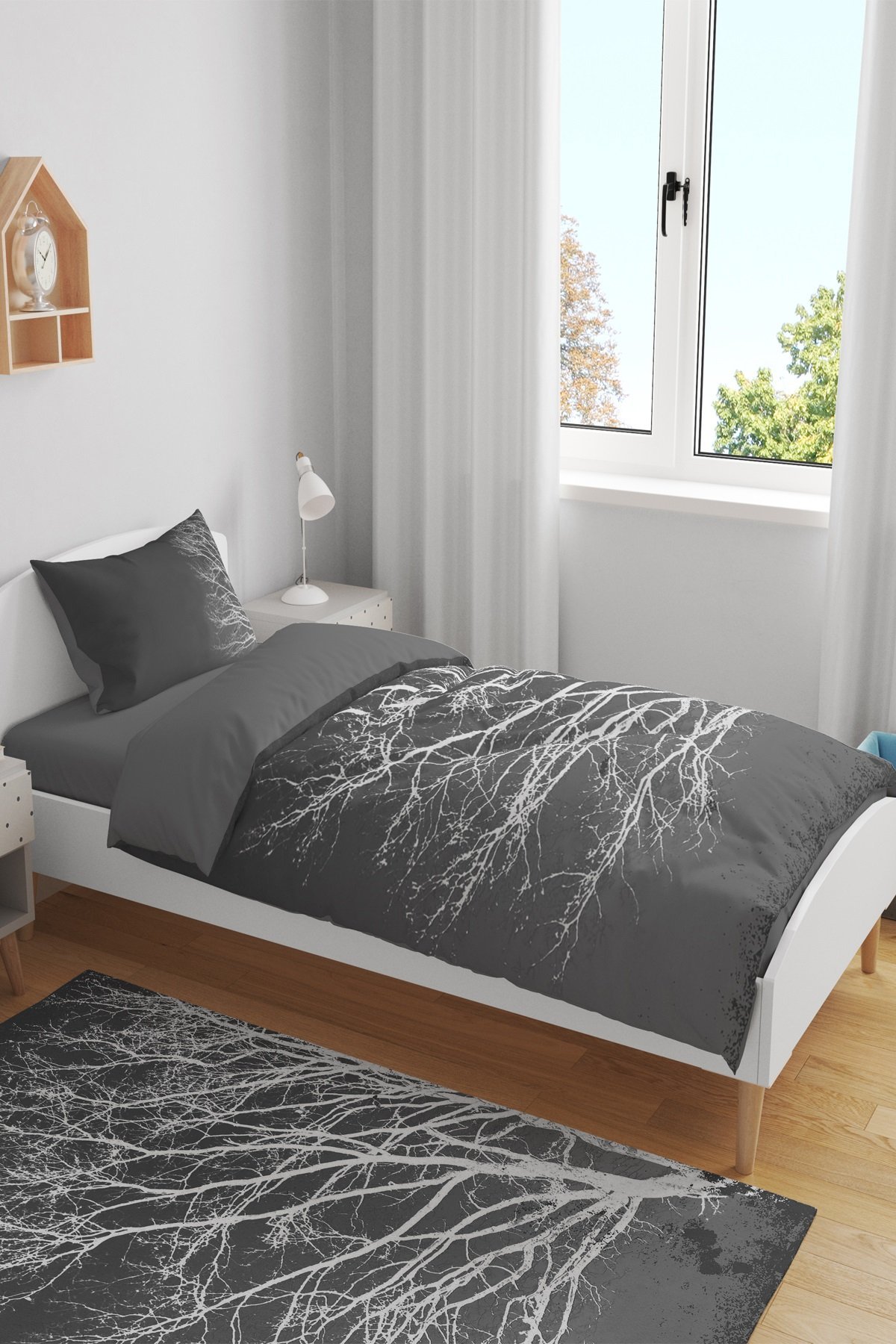 Gri Ağaç Desenli Tek Kişilik Bebek Çocuk Nevresim Takımı