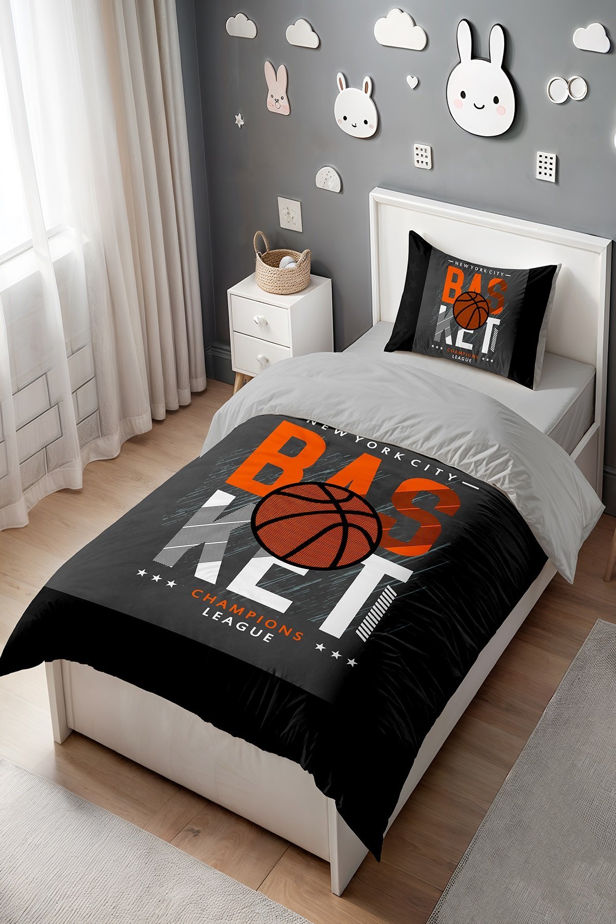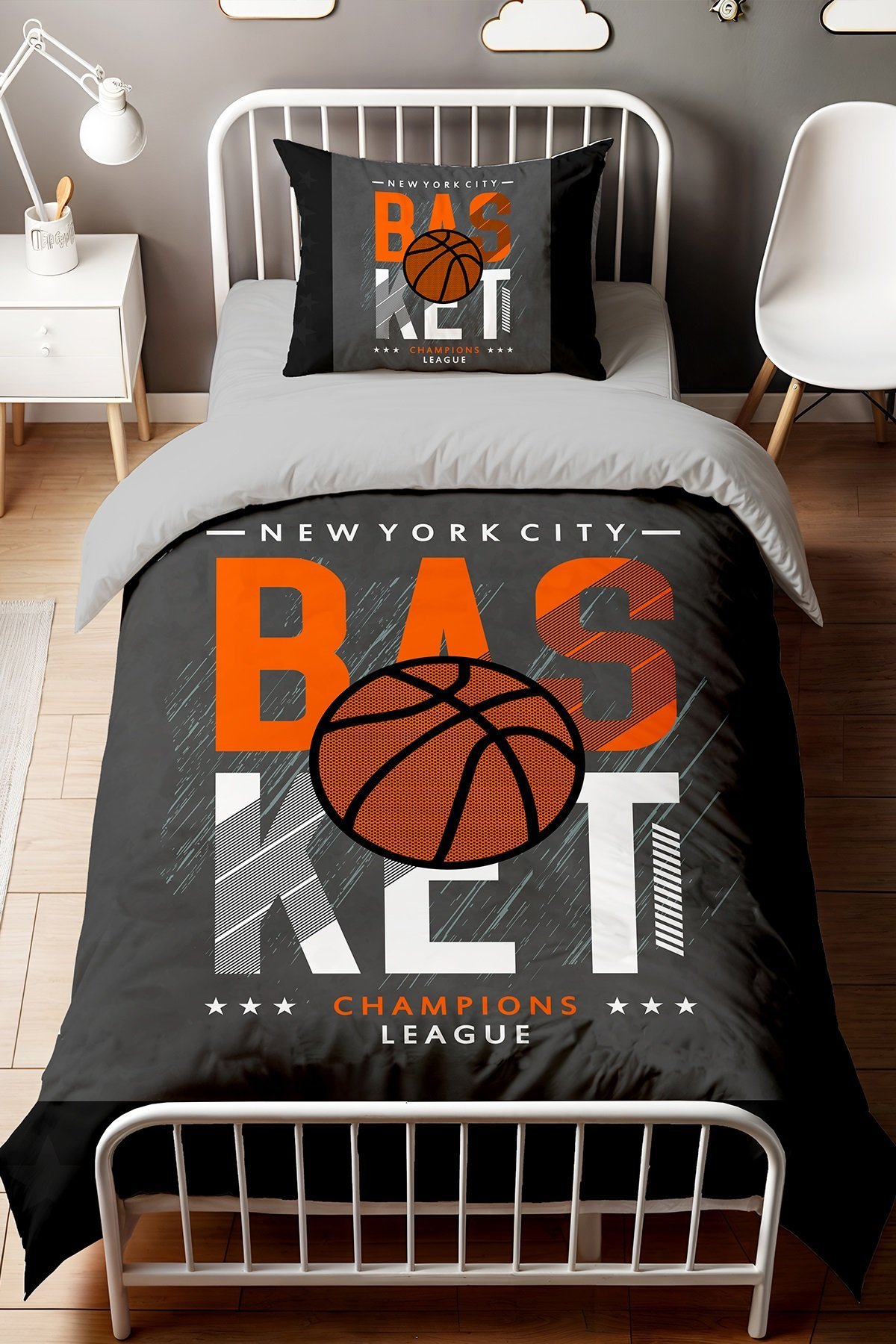 Gri Basketbol Ligi Desenli Tek Kişilik Bebek Çocuk Nevresim Seti