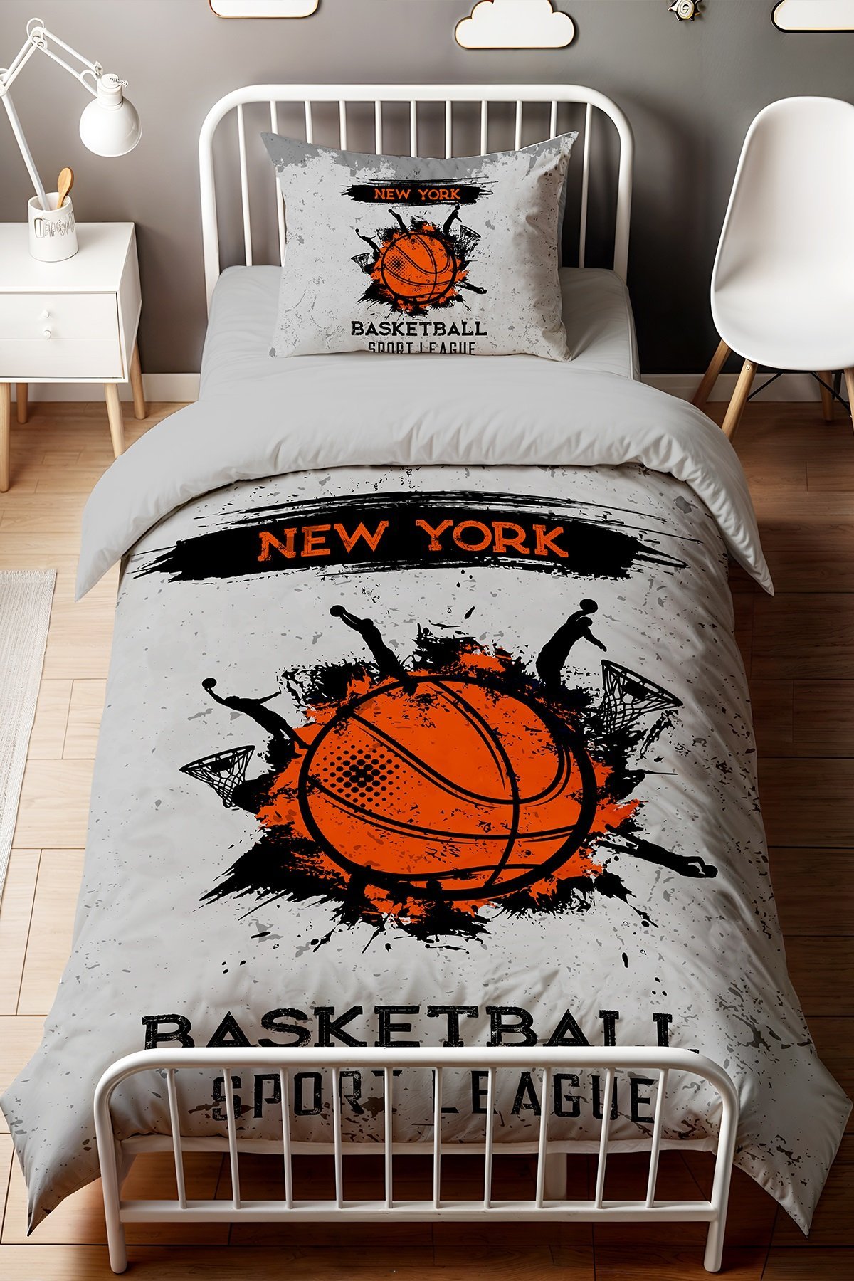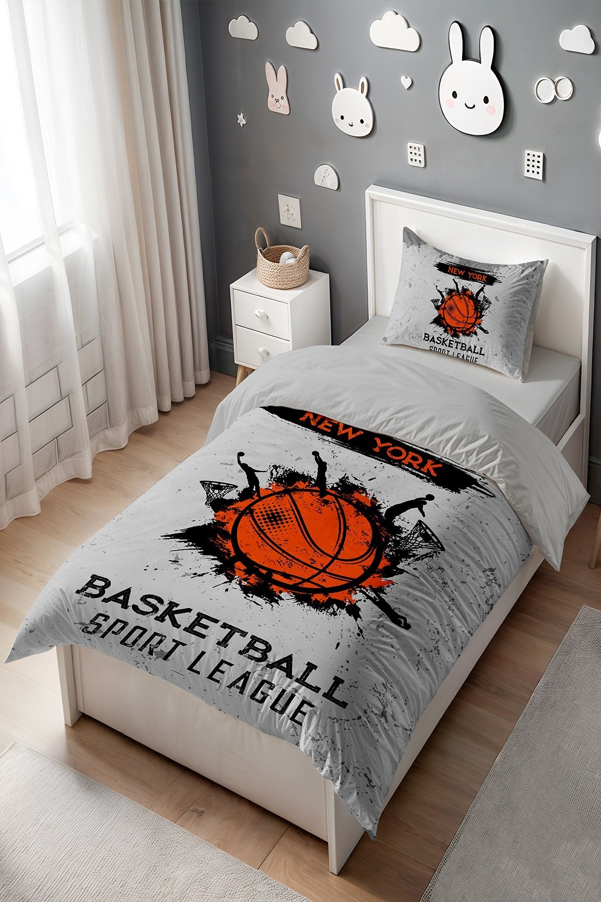 Gri Basketbolcular Desenli Tek Kişilik Bebek Çocuk Nevresim Seti