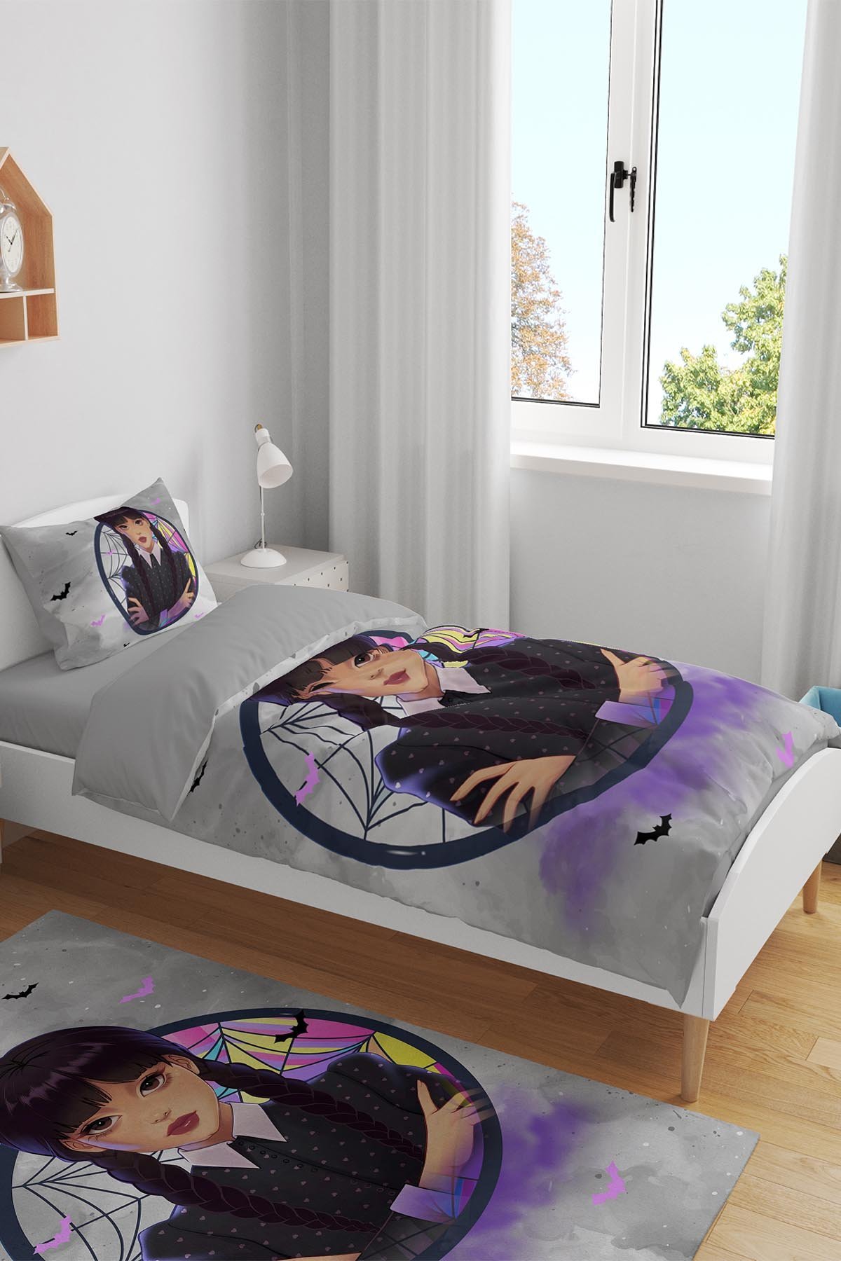 Gri Çerçeveli Wednesday Desenli Tek Kişilik Bebek Çocuk Nevresim Takımı