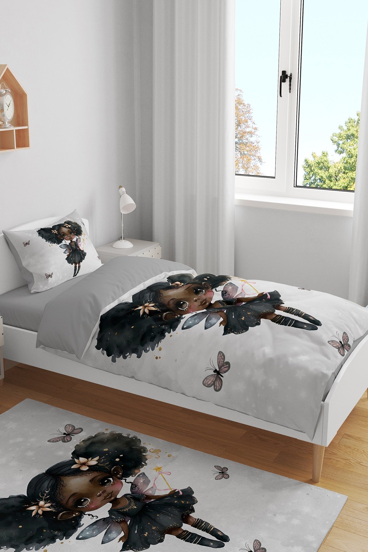 Gri Çikolata Kız Desenli Tek Kişilik Bebek Çocuk Nevresim Seti