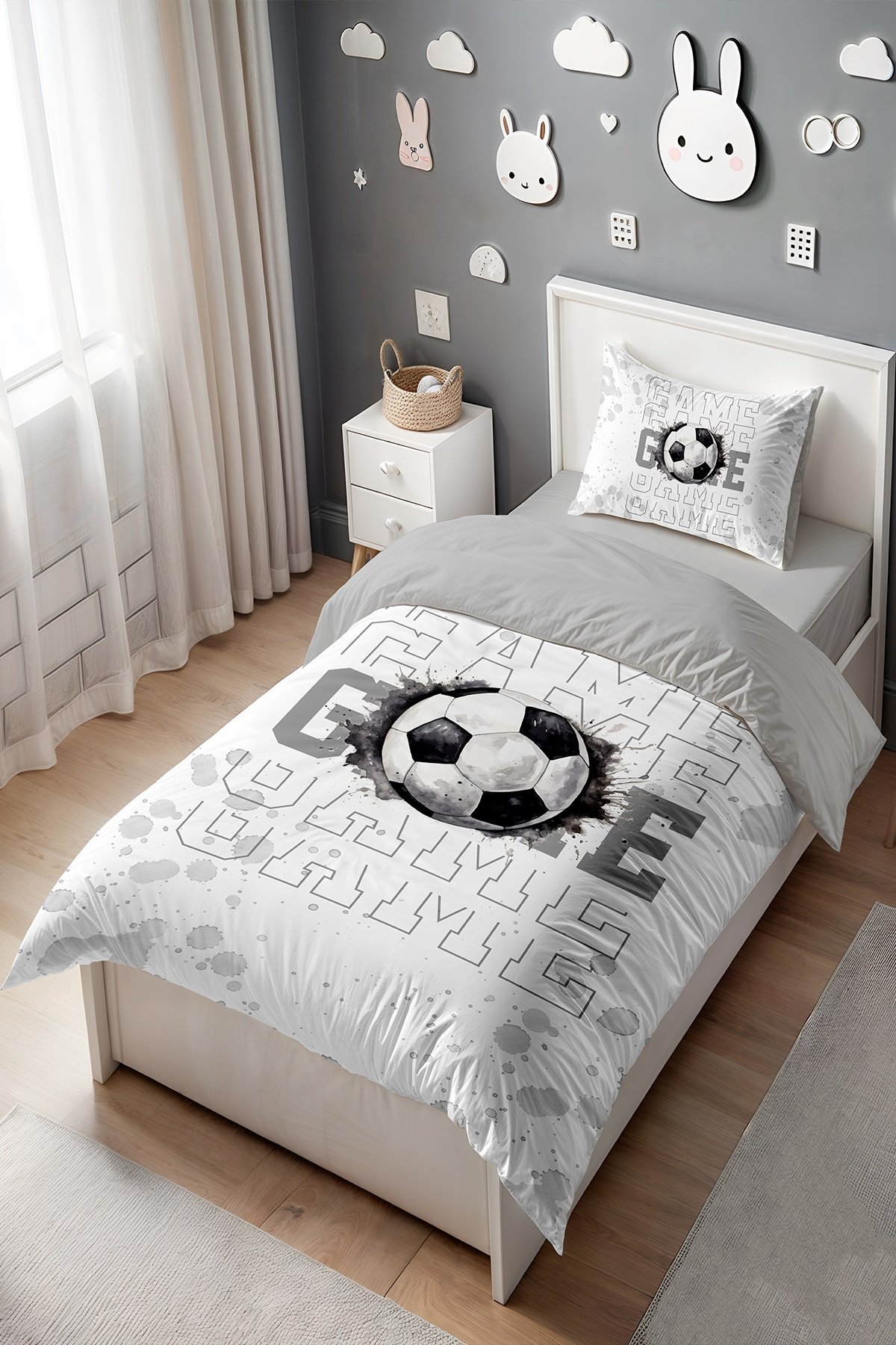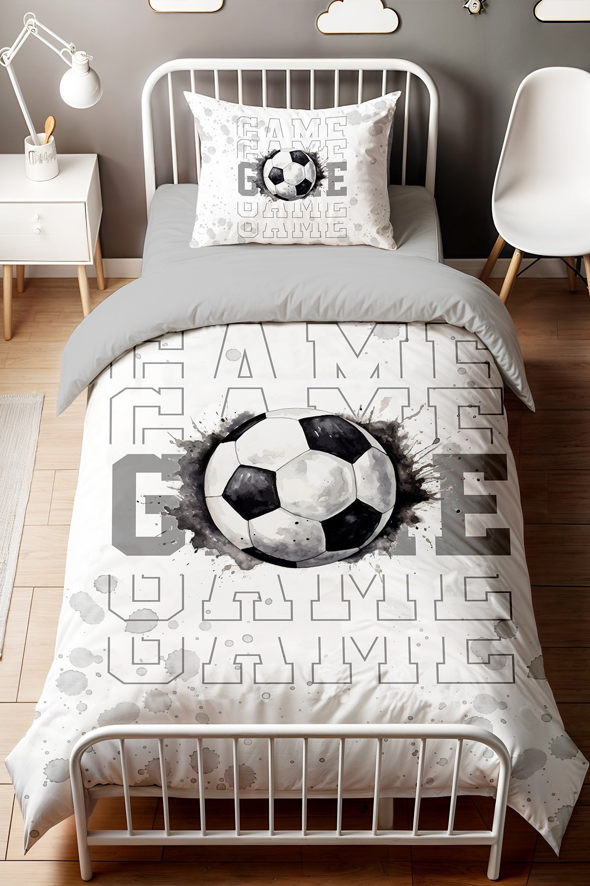 Gri Futbol Desenli Tek Kişilik Bebek Çocuk Nevresim Seti
