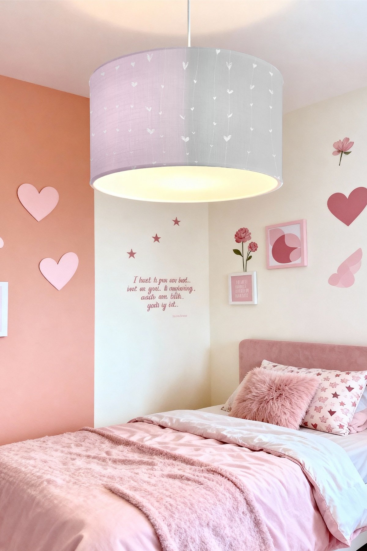 Gri Pembe Ip Kalpler Desenli Çocuk Odası Avize