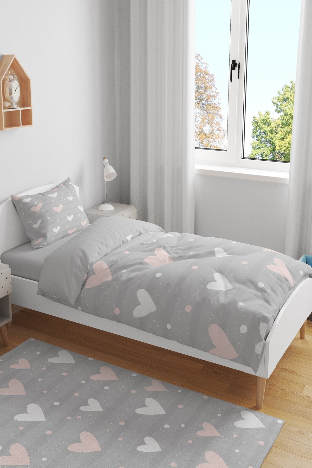 Gri Pudra Kalpler Desenli Tek Kişilik Bebek Çocuk Nevresim Takımı