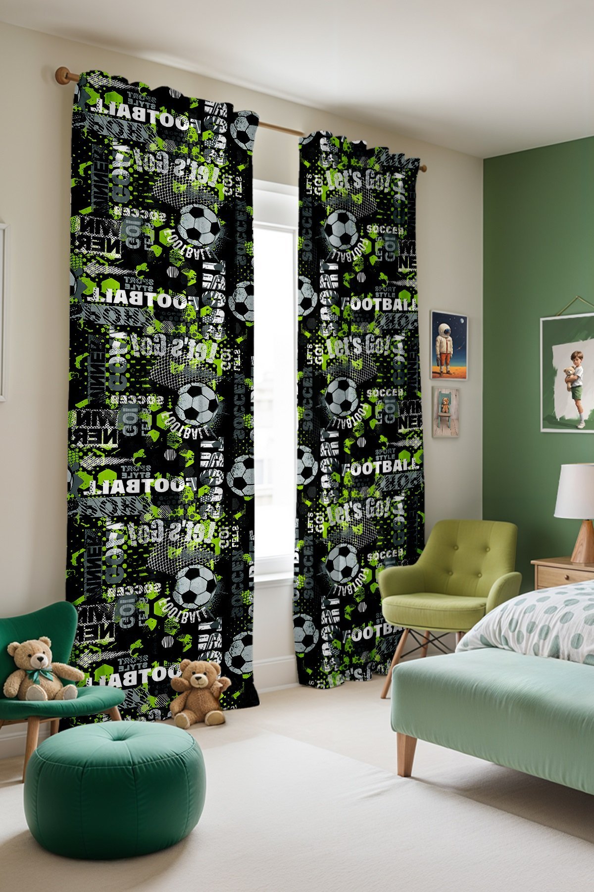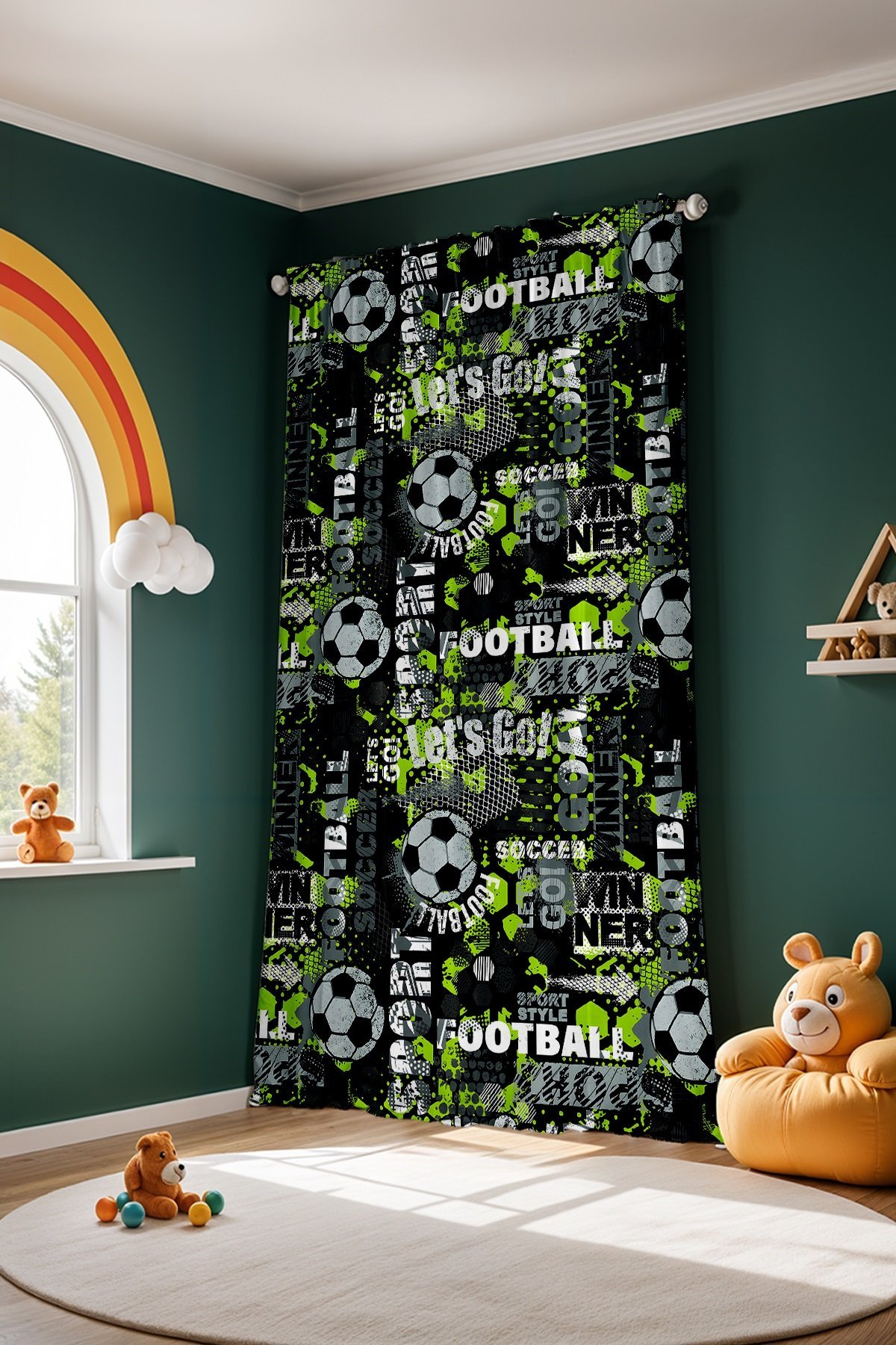 Gri Yeşil Futbol Desenli Çocuk Bebek Odası Fon Perde (Tek Kanat Fiyatlandırma)