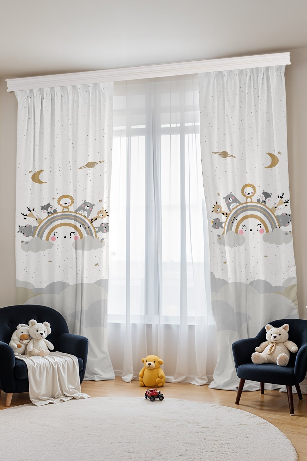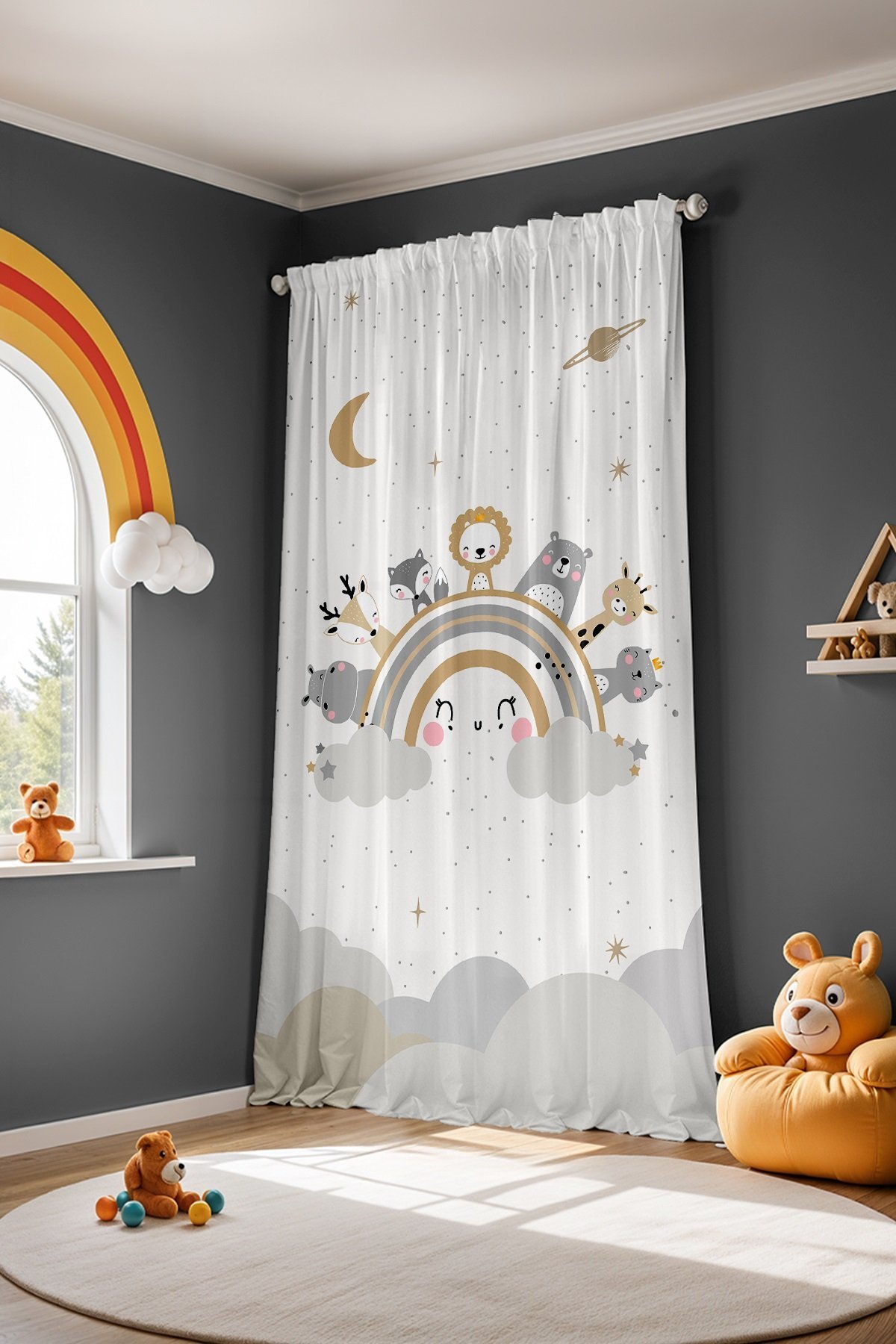 Gülen Gökkuşağı Safari Desenli Çocuk Bebek Odası Fon Perde (Tek Kanat Fiyatlandırma)