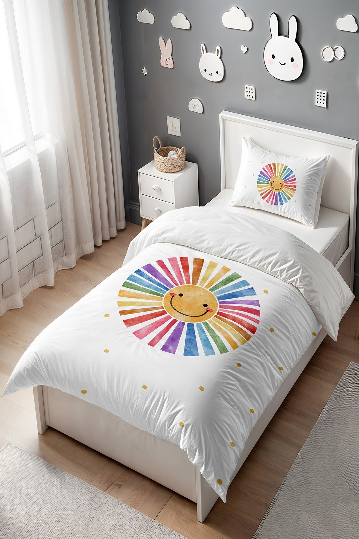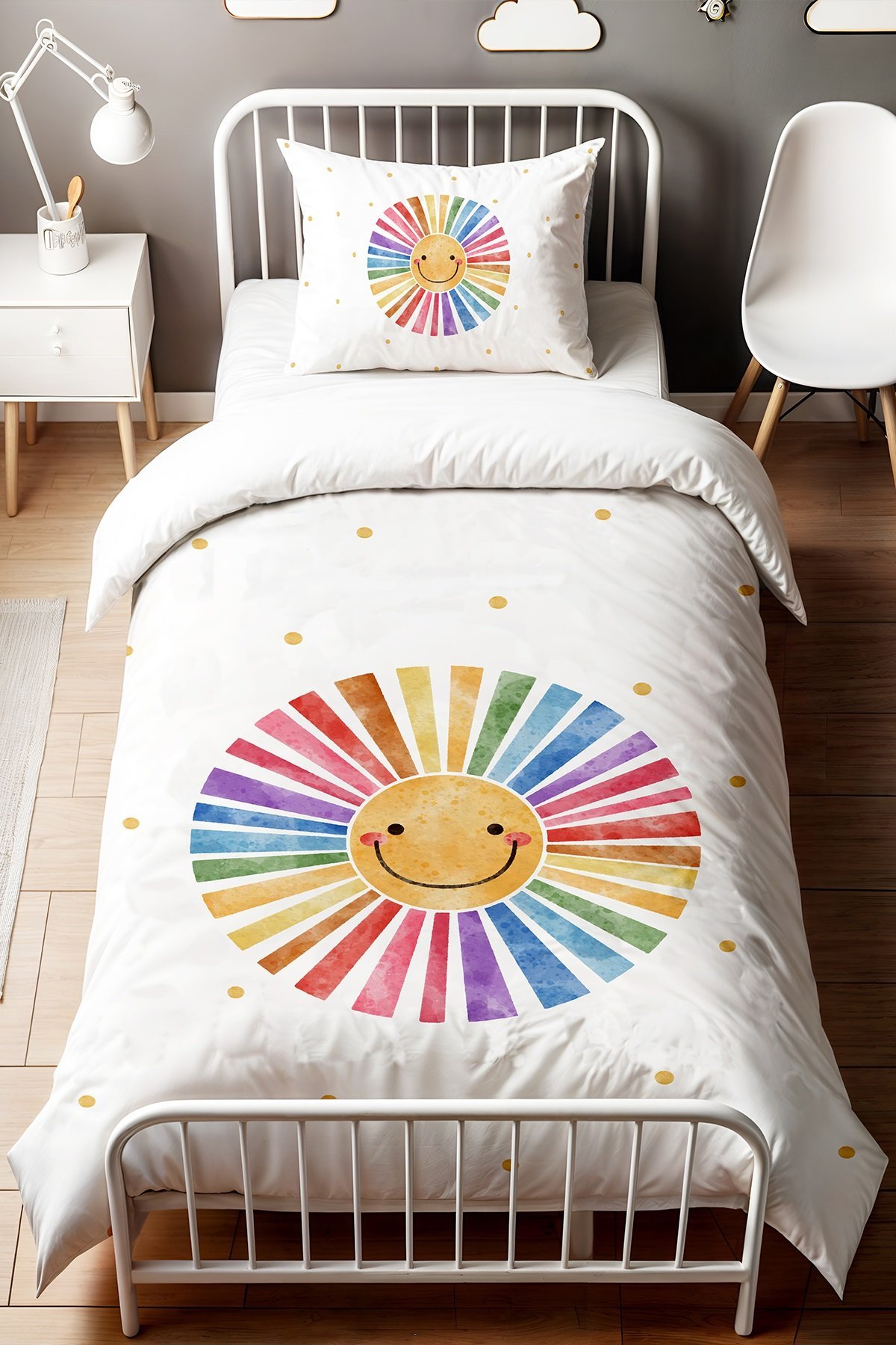 Gülen Suratlı Çember Desenli Tek Kişilik Bebek Çocuk Nevresim Seti