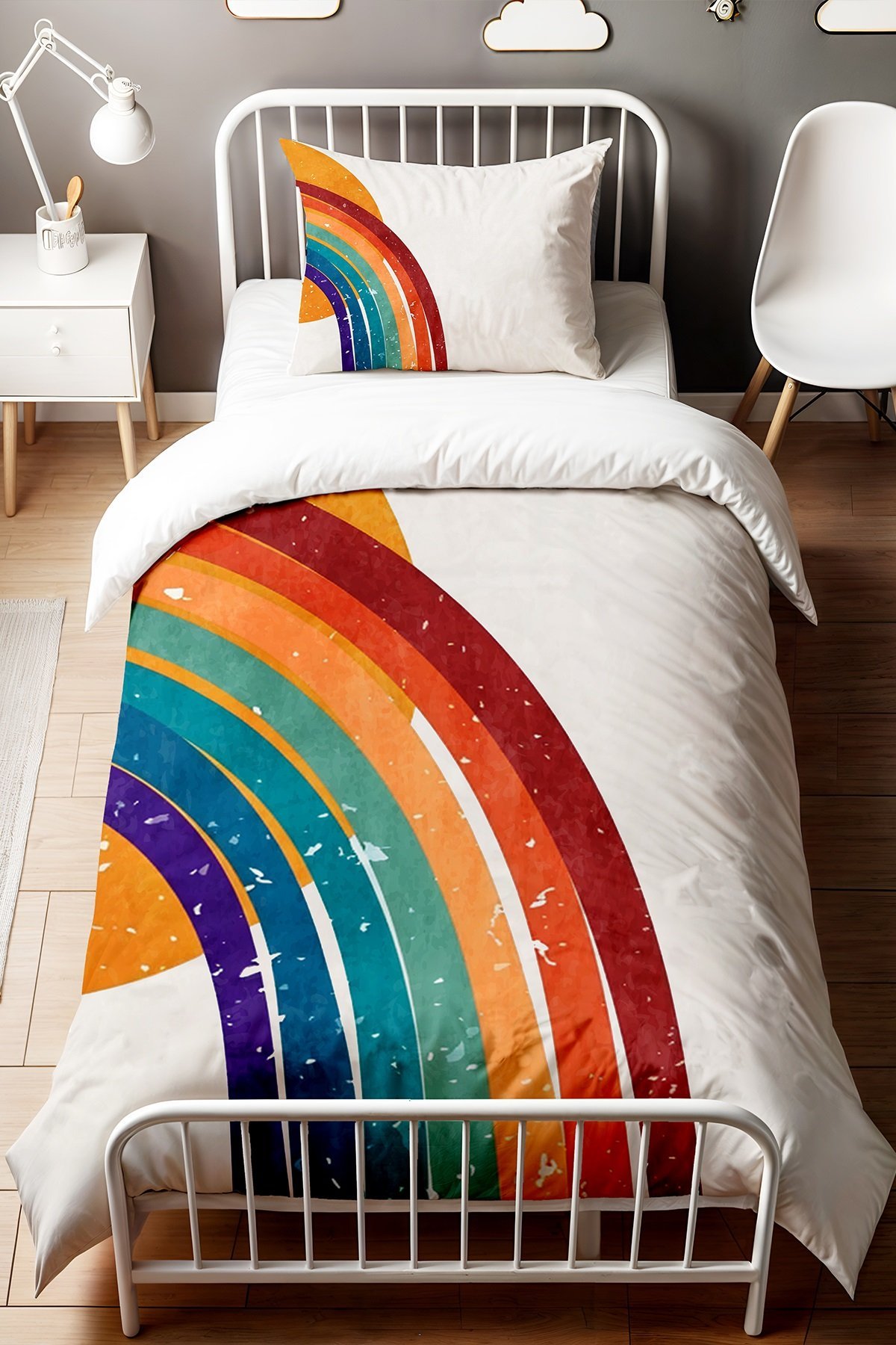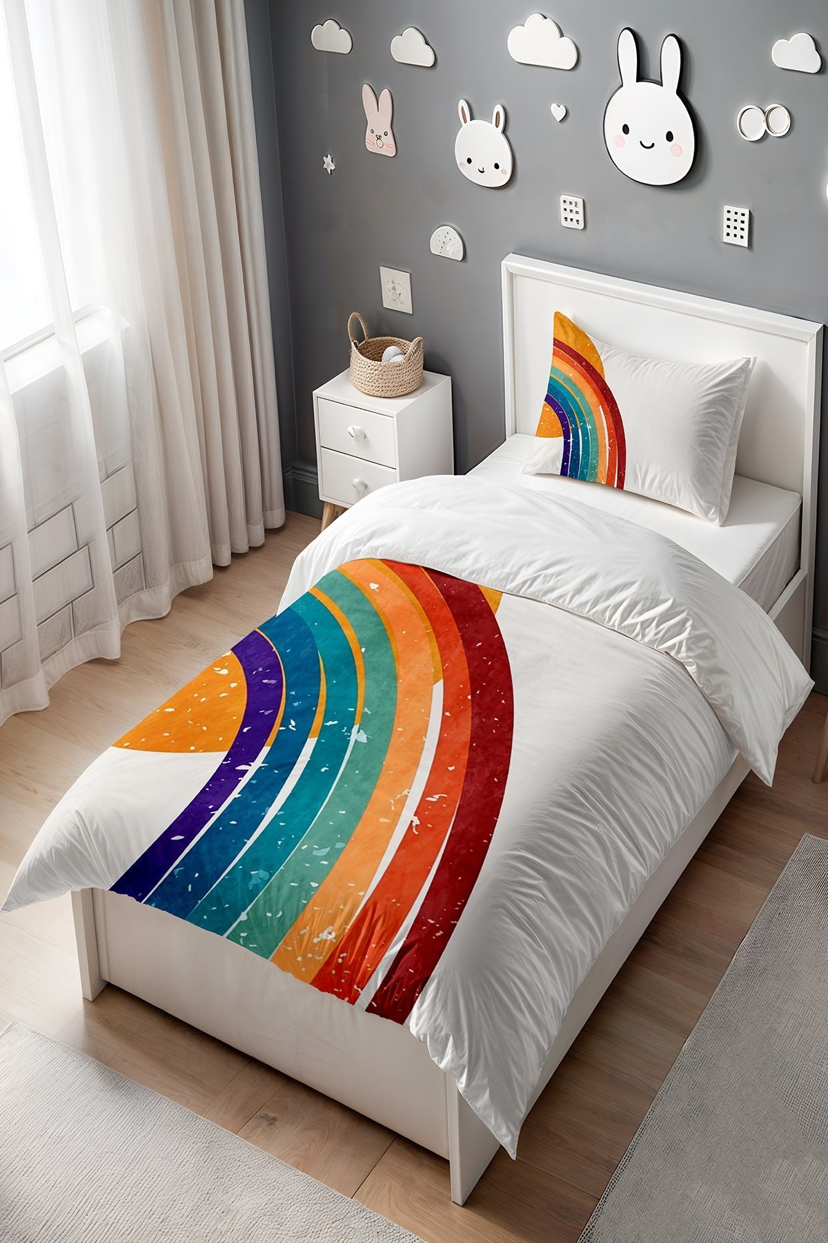 Güneş ve Gökkuşağı Desenli Tek Kişilik Bebek Çocuk Nevresim Seti