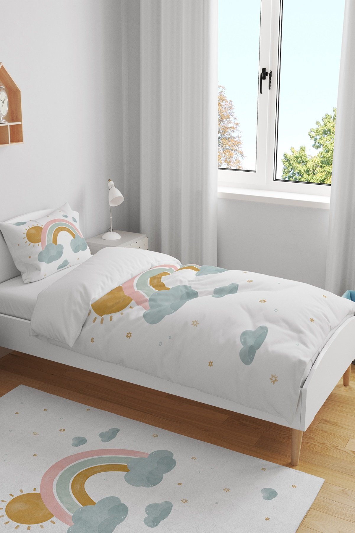 Güneşli Gökkuşağı Desenli Tek Kişilik Bebek Çocuk Nevresim Takımı