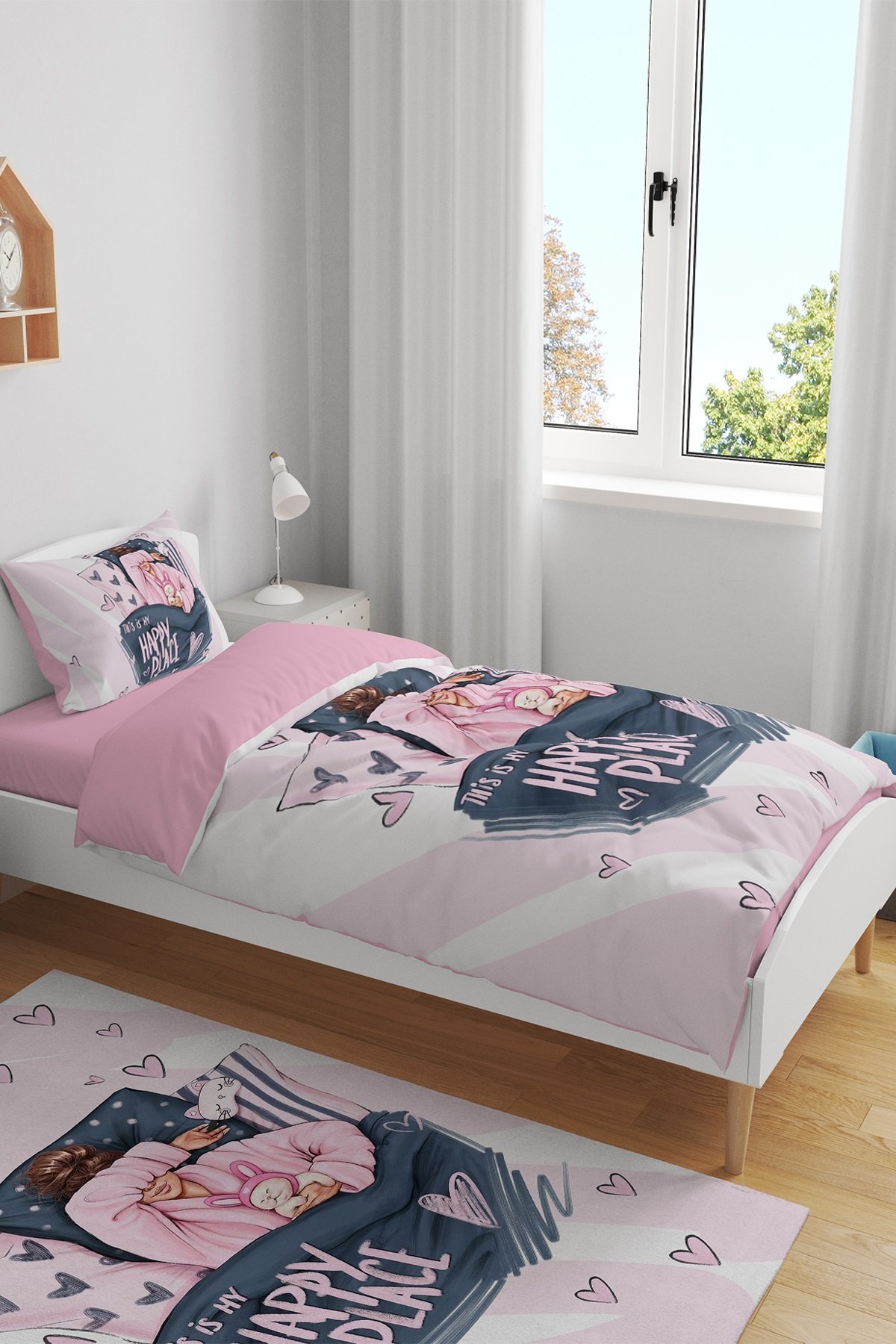 Happy Place Desenli Tek Kişilik Bebek Çocuk Nevresim Seti