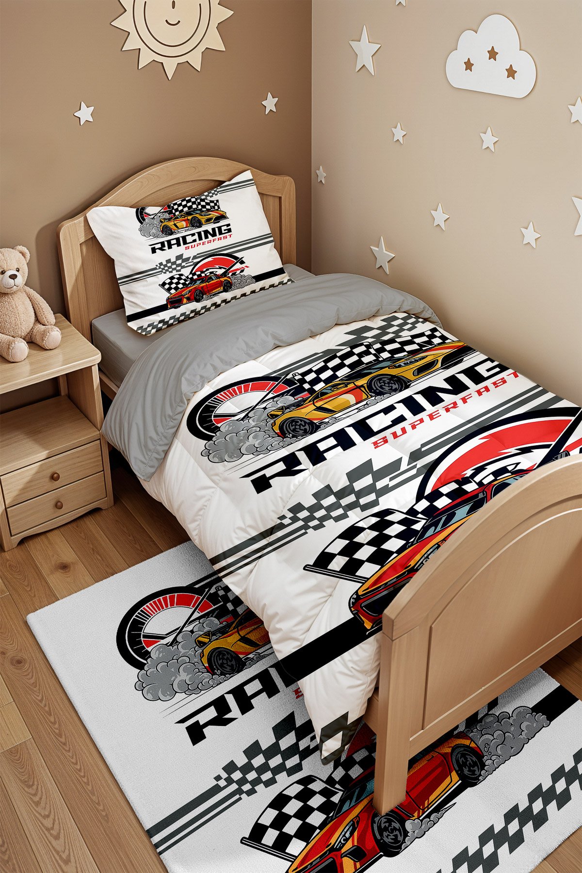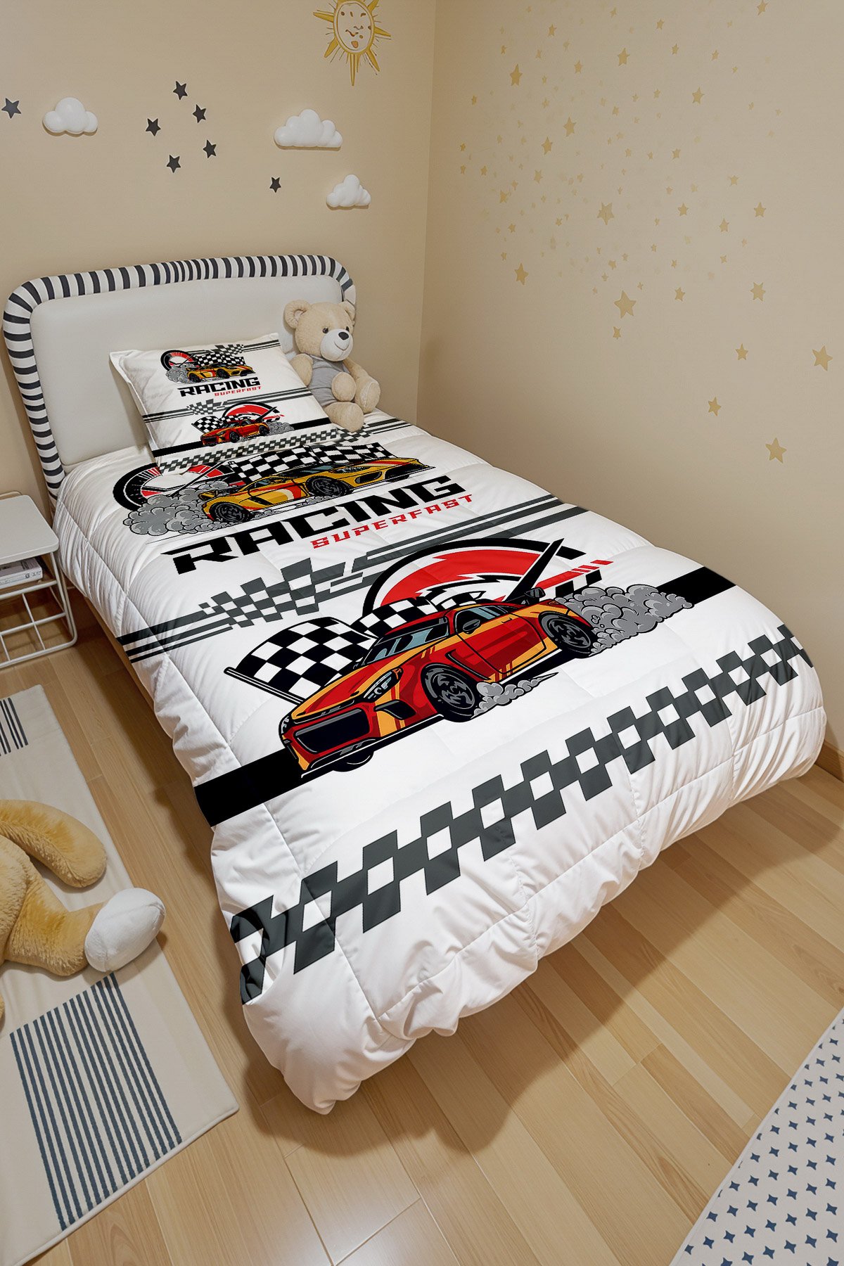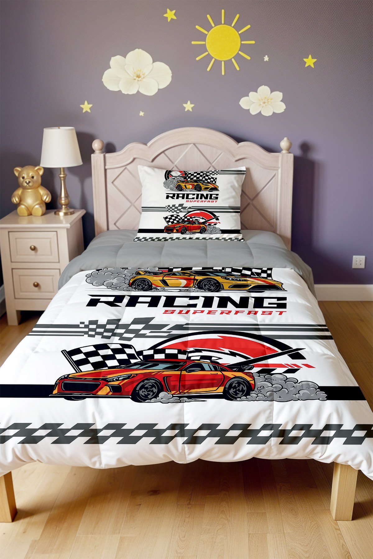 Hız Tutkusu Desenli Tek Kişilik Yorgan ve Yastık Kılıfı