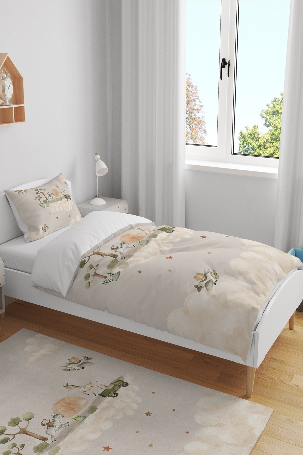 Jeep li Sevimli Afrika Safari Desenli Tek Kişilik Bebek Çocuk Nevresim Seti