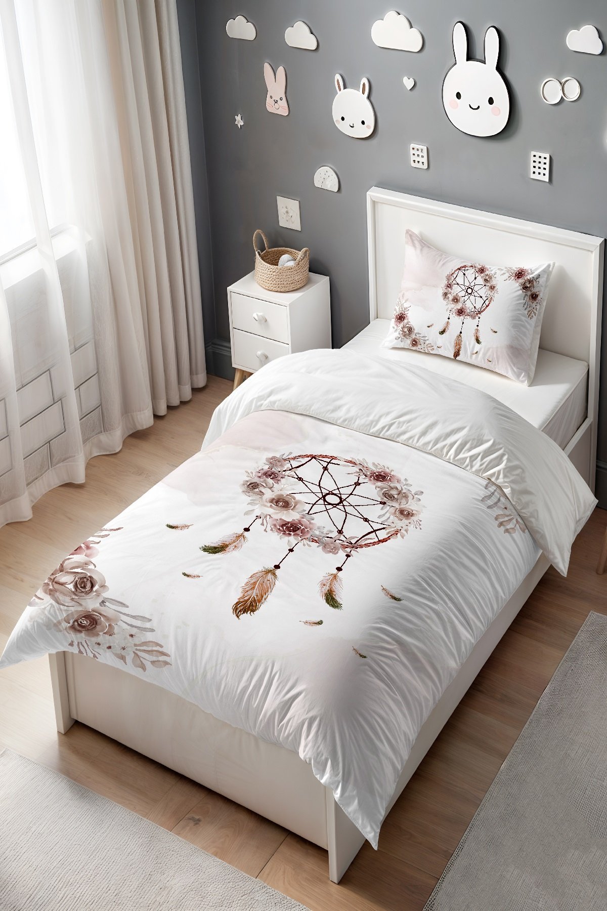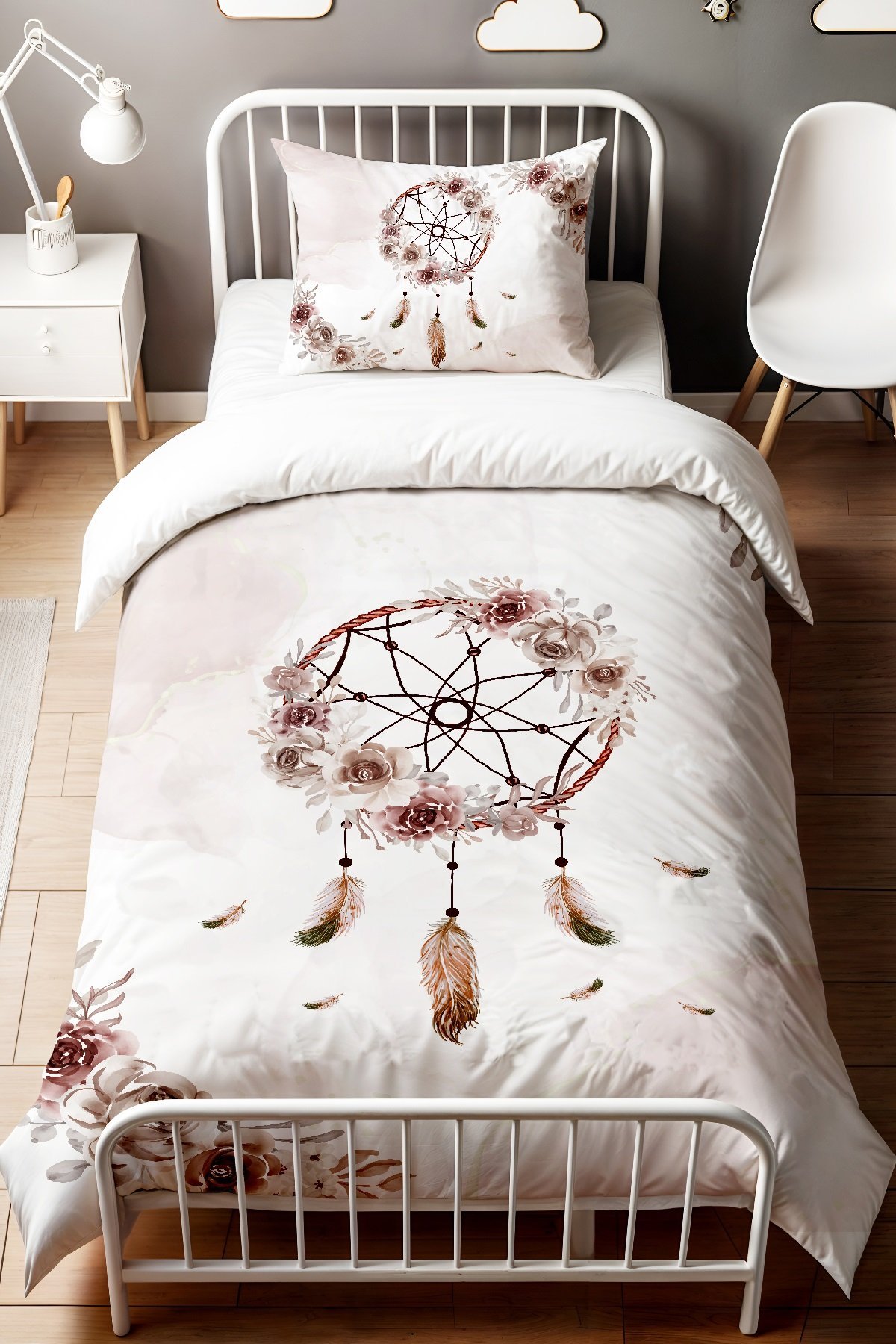 Kahverengi Düşkapanı Desenli Tek Kişilik Bebek Çocuk Nevresim Seti