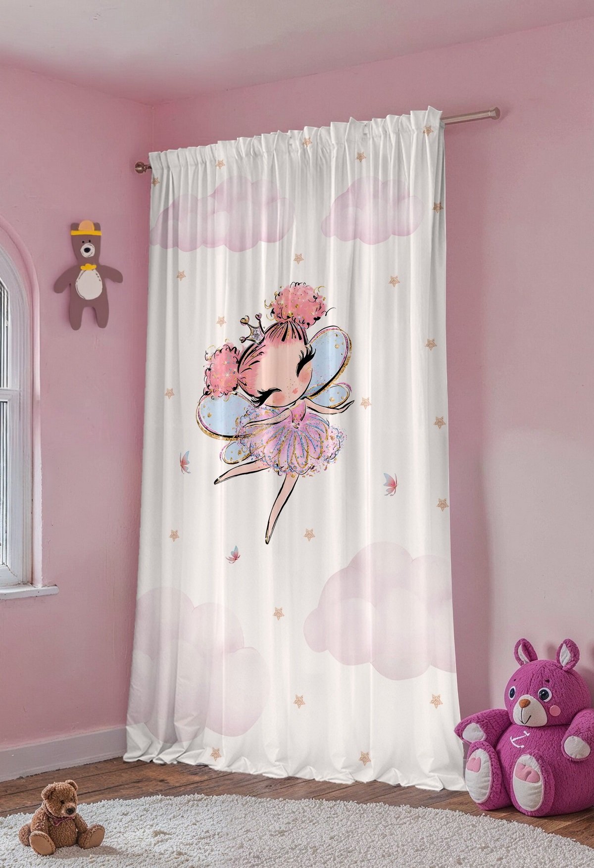 Kanatlı Altın Peri Desenli Çocuk Bebek Odası Fon Perde (Tek Kanat Fiyatlandırma)