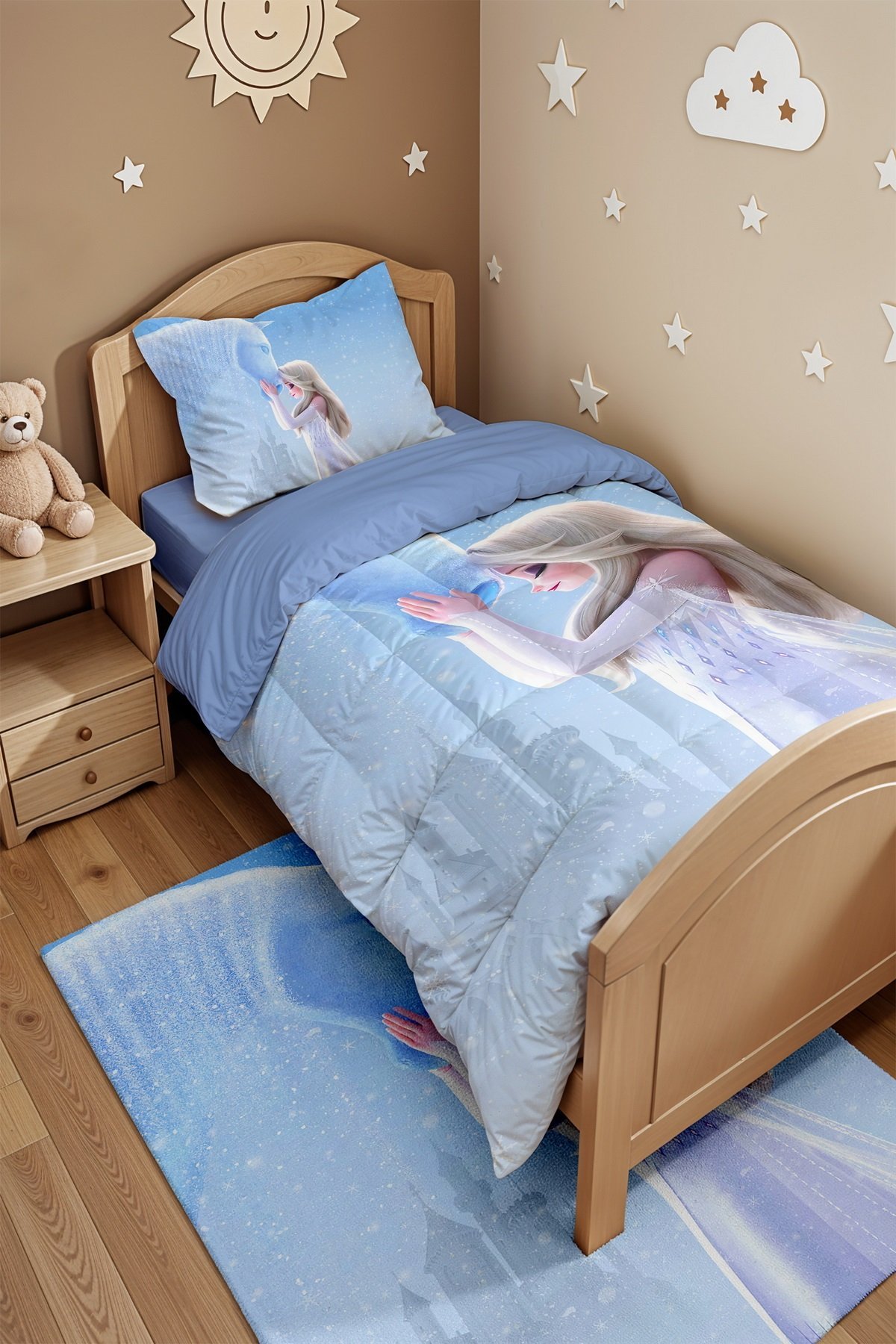 Kar Atı ve Elsa Desenli Tek Kişilik Yorgan ve Yastık Kılıfı
