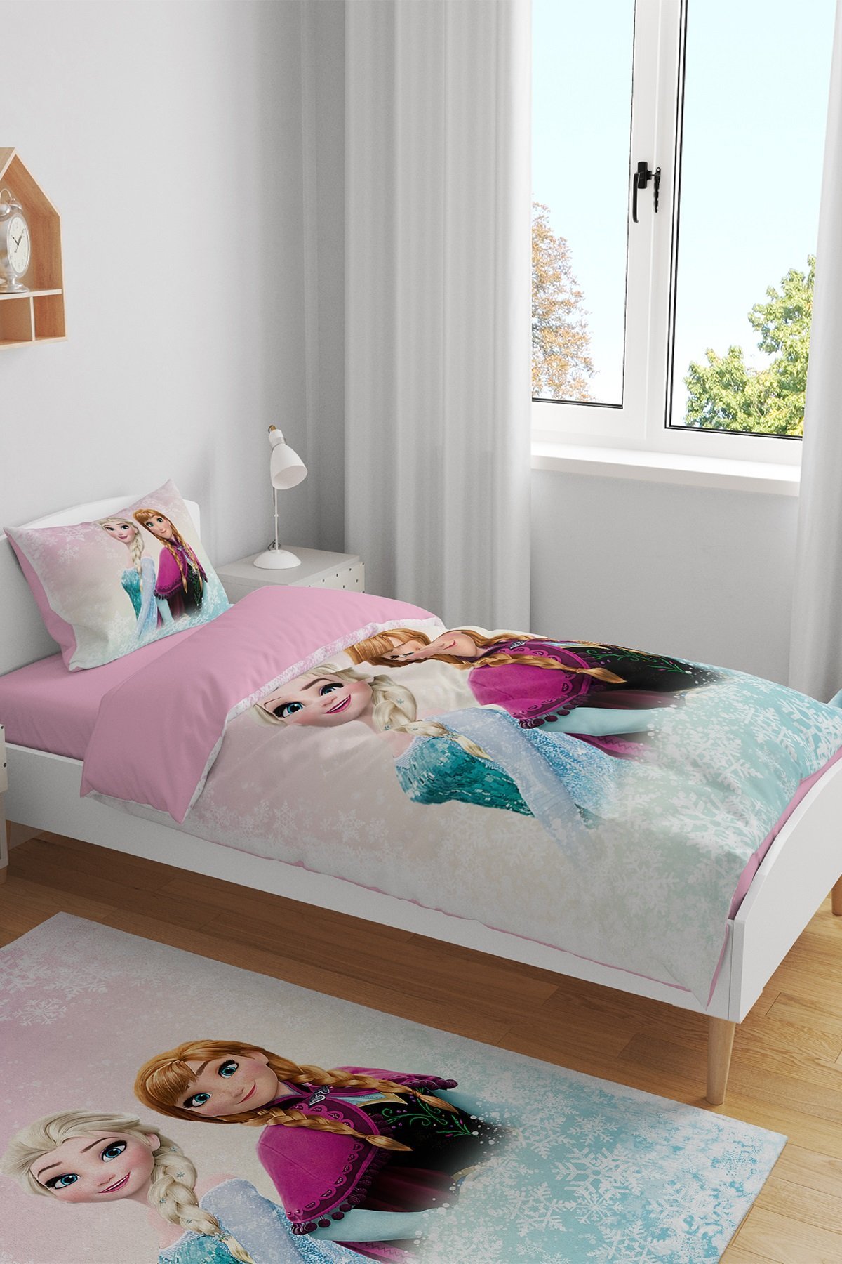 Kar Kristalleri Elsa ve Anna Desenli Tek Kişilik Bebek Çocuk Nevresim Takımı