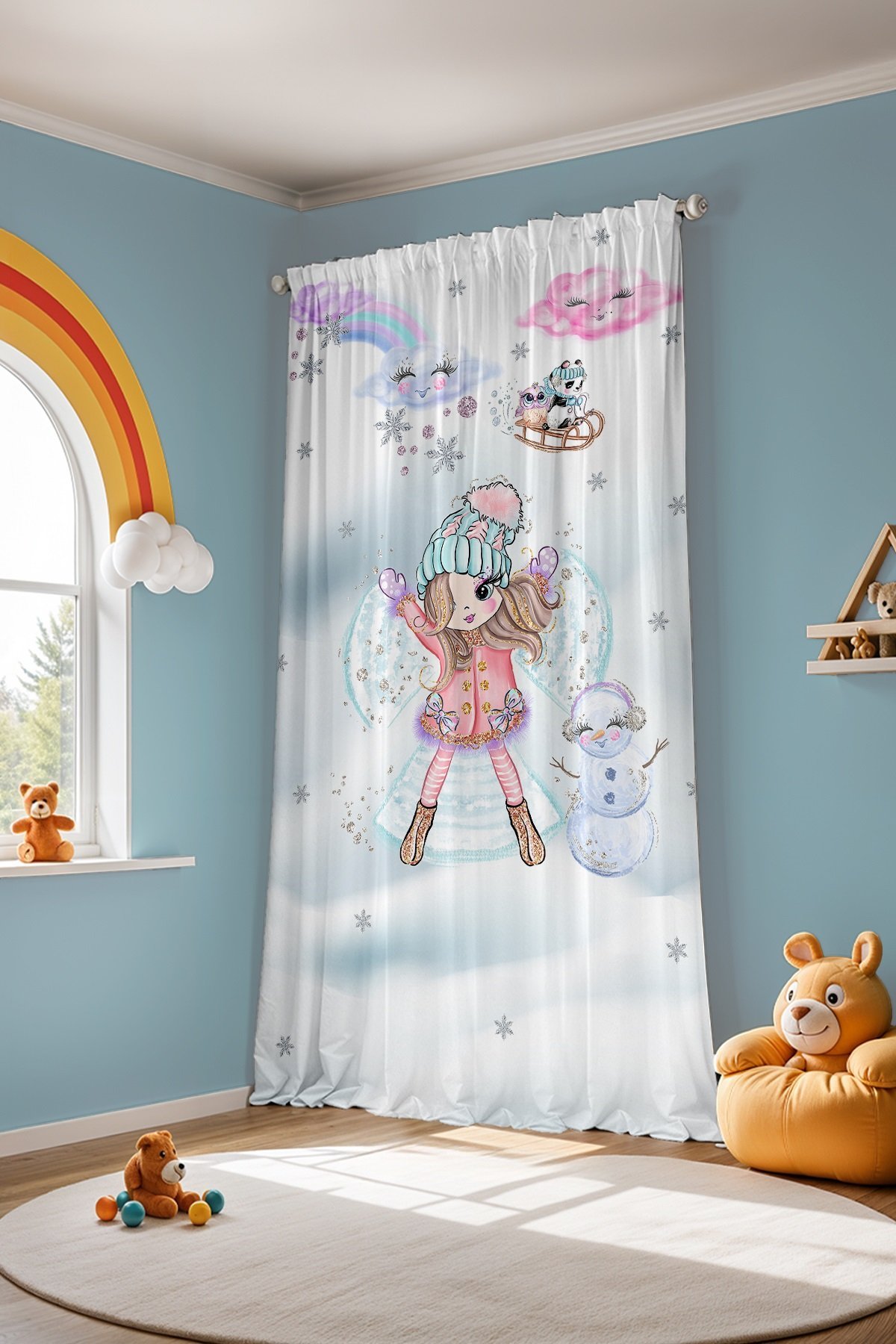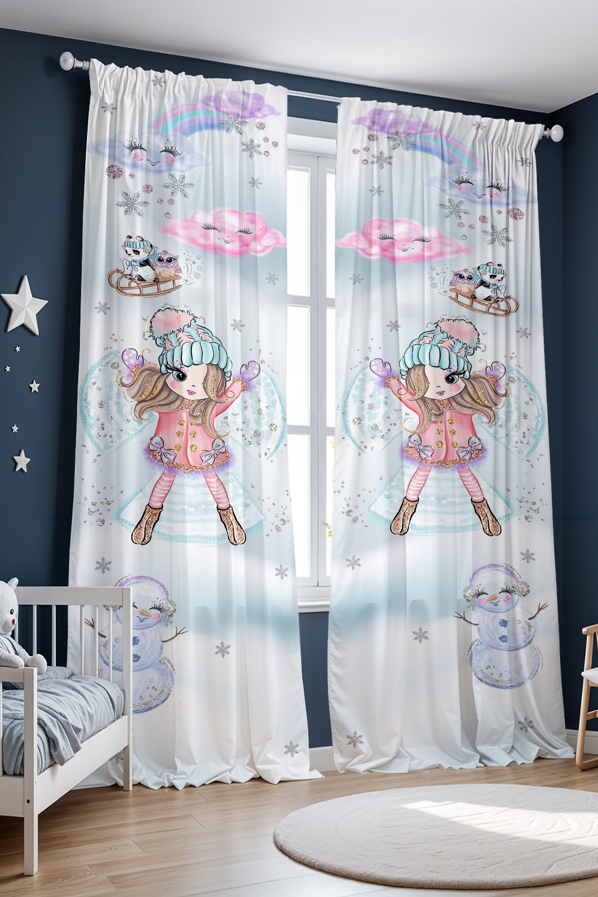 Kardaki Prenses Desenli Çocuk Bebek Odası Fon Perde (Tek Kanat Fiyatlandırma)