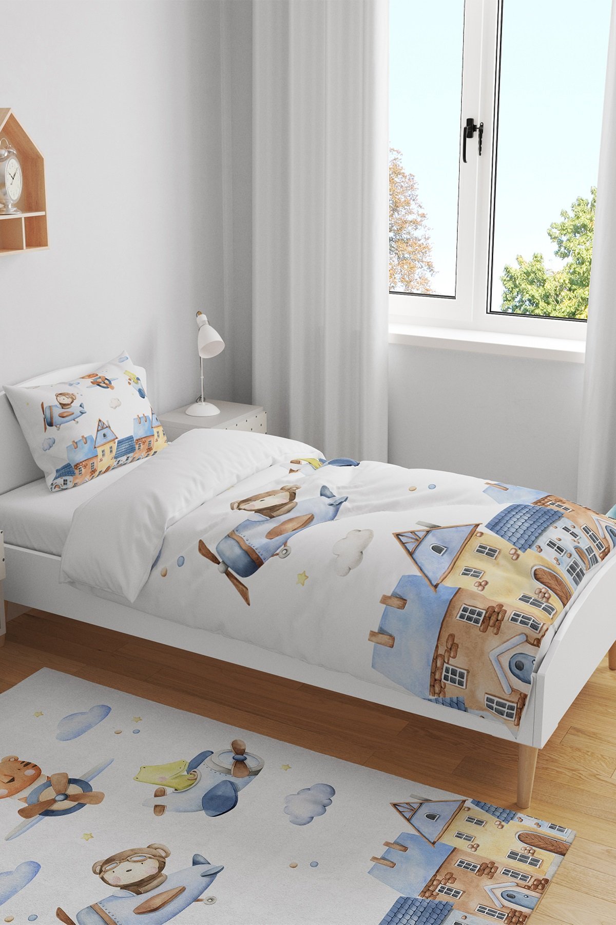 Kasabadaki Pilotlar Desenli Tek Kişilik Bebek Çocuk Nevresim Takımı