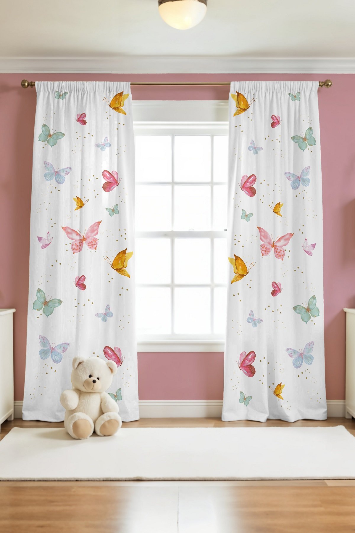 Kelebek Vadisi Desenli Çocuk Bebek Odası Fon Perde (Tek Kanat Fiyatlandırma)