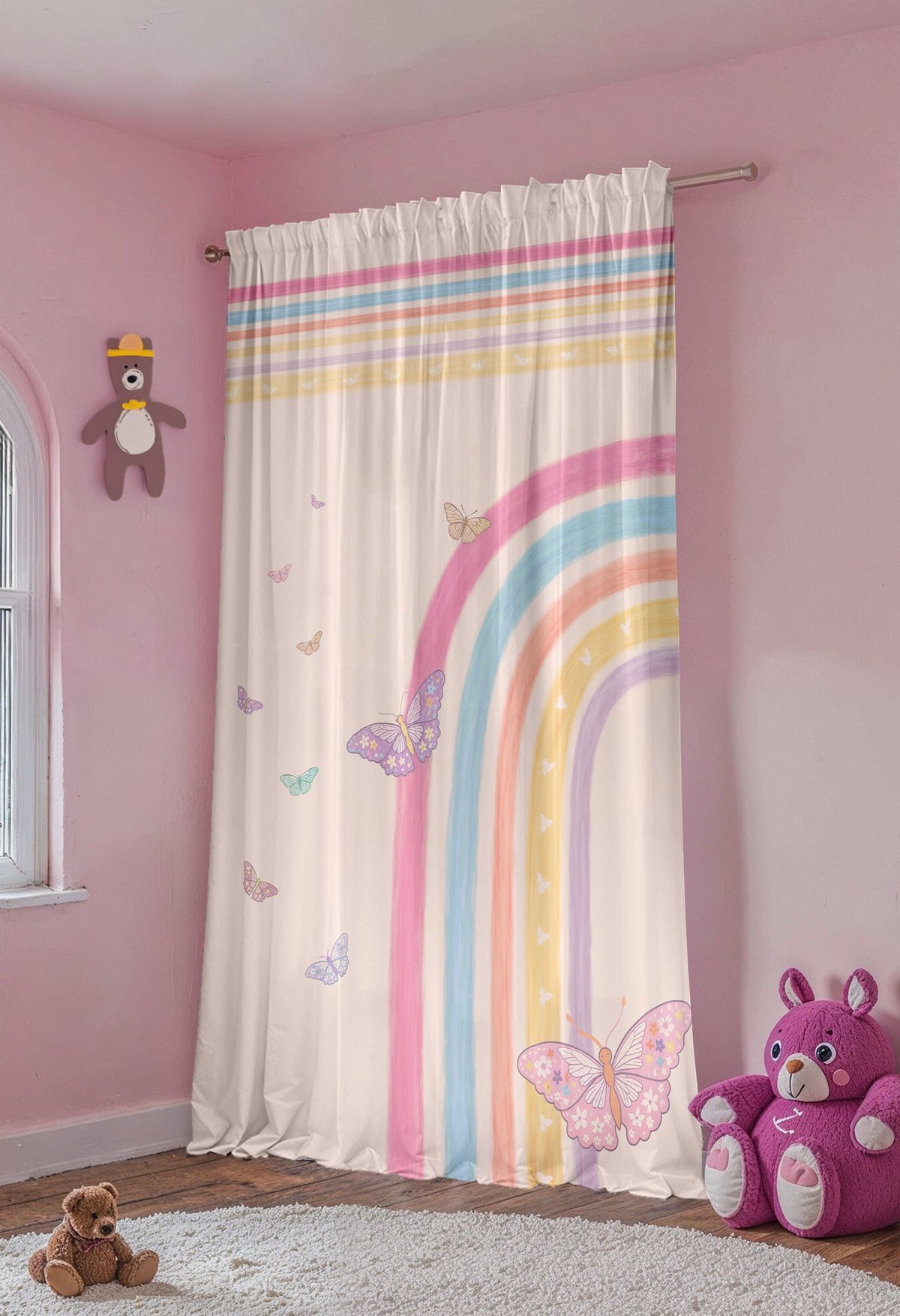 Kelebekli Gökkuşağı Desenli Çocuk Bebek Odası Fon Perde (Tek Kanat Fiyatlandırma)