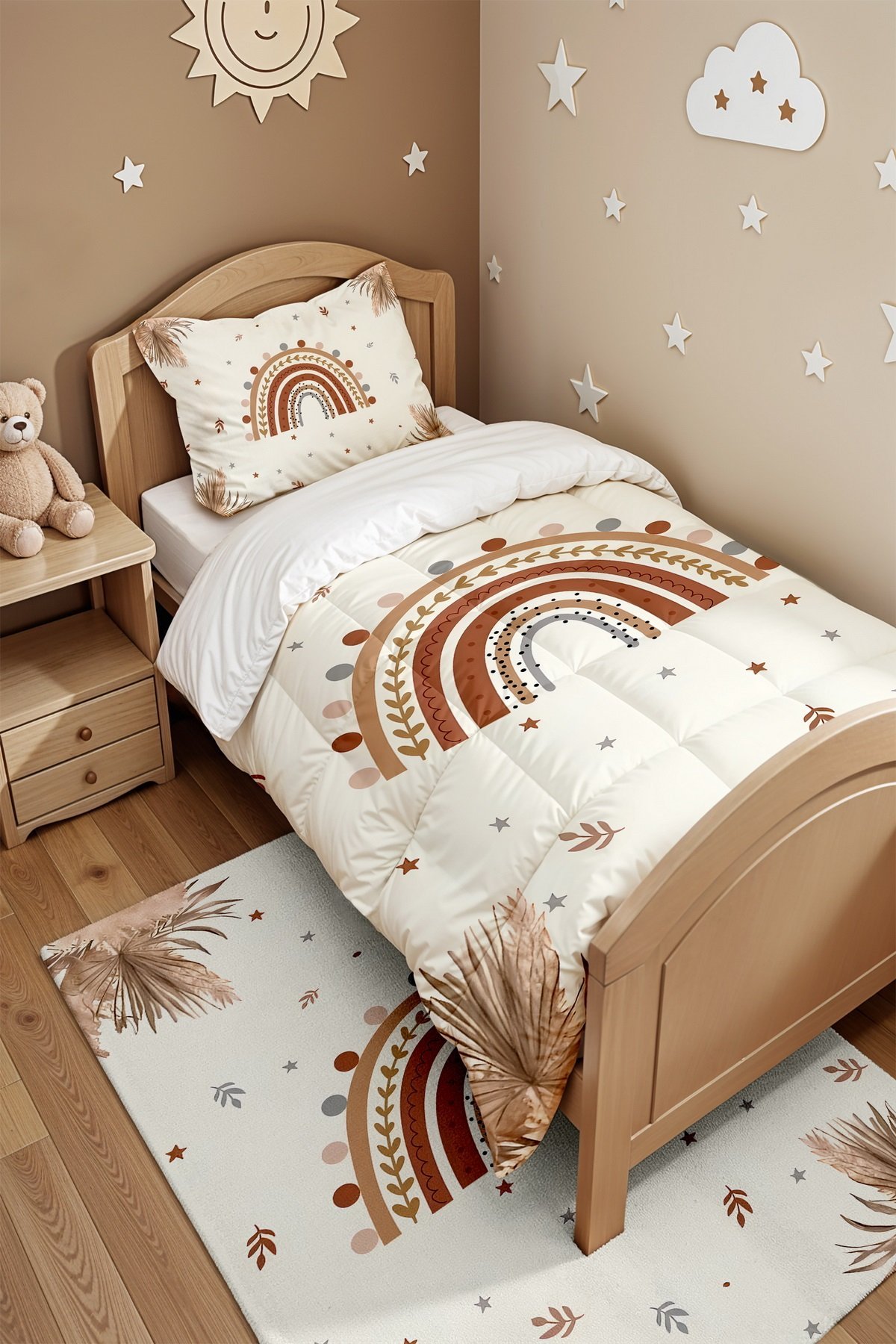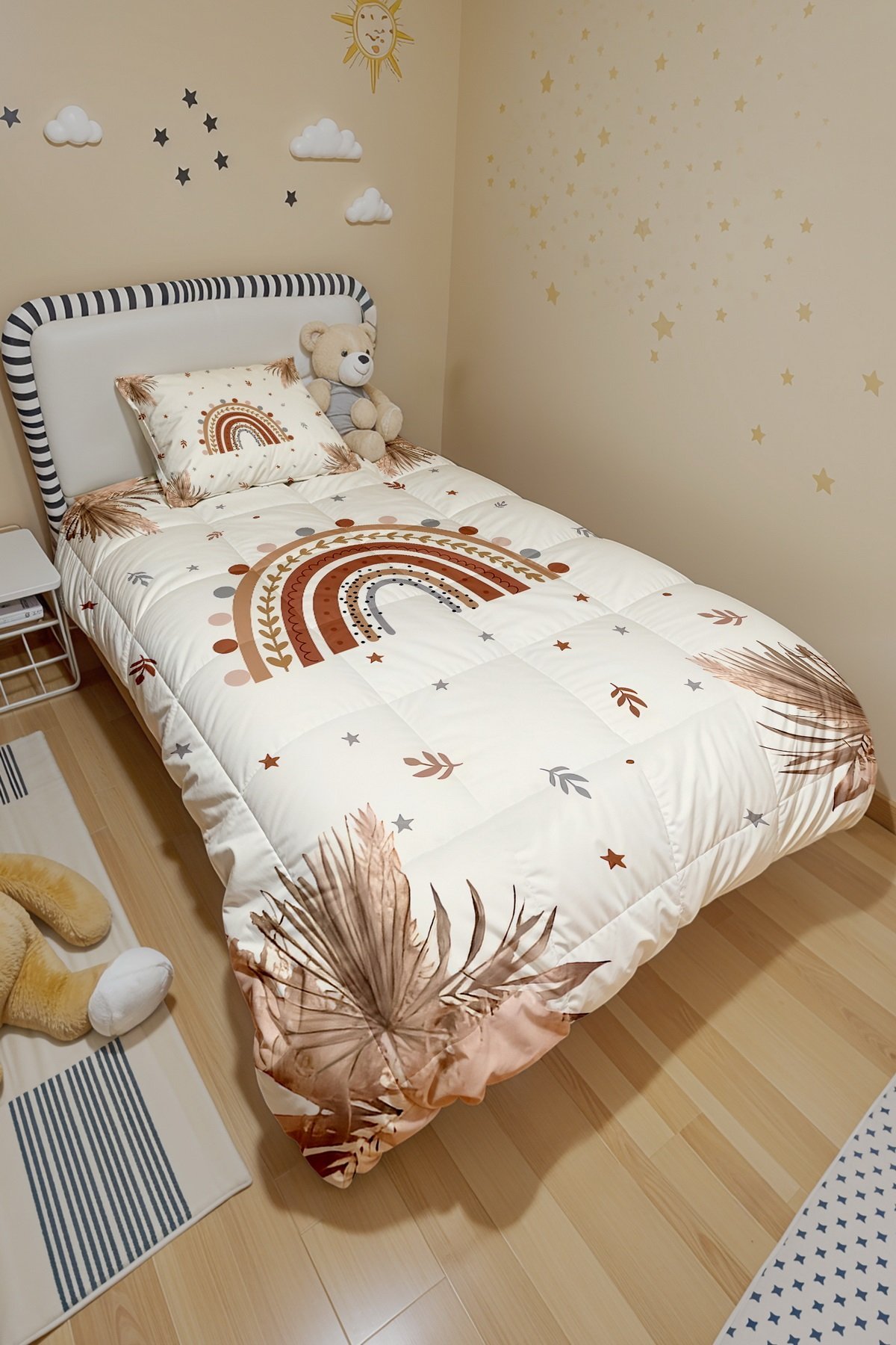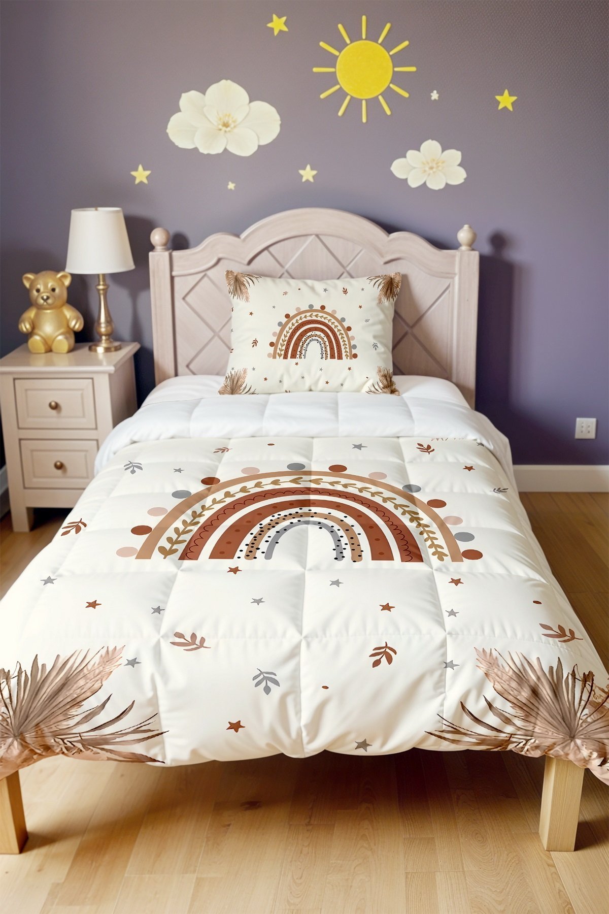 Kenar Botanik Gökkuşağı Desenli Tek Kişilik Yorgan ve Yastık Kılıfı