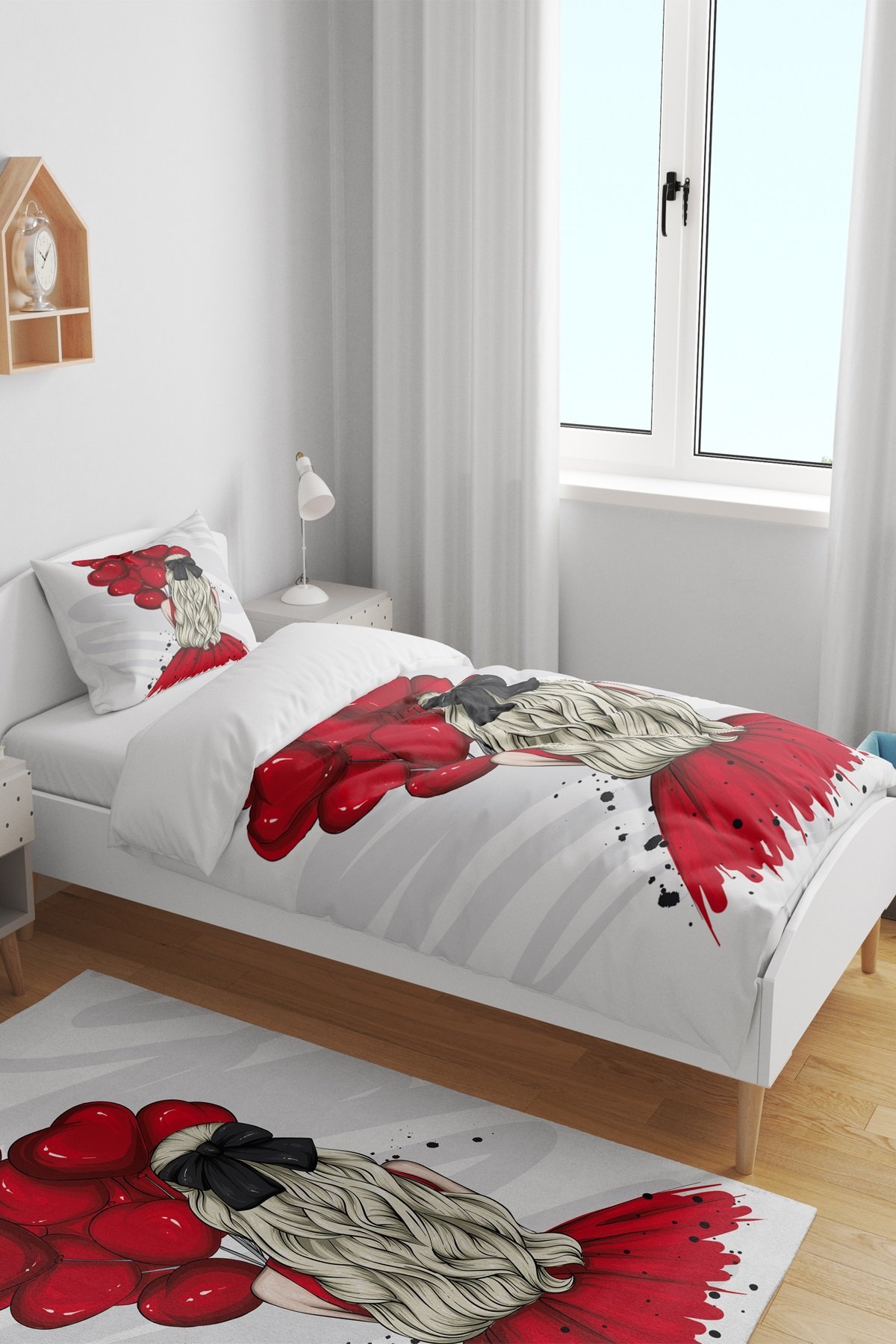Kırmızı Balonlu Kız Desenli Tek Kişilik Bebek Çocuk Nevresim Takımı