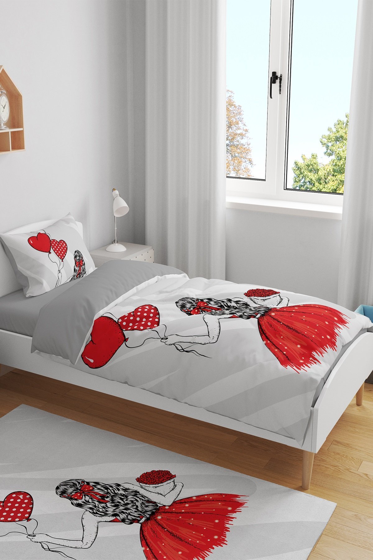 Kırmızı Gül Buketli Kız Desenli Tek Kişilik Bebek Çocuk Nevresim Seti